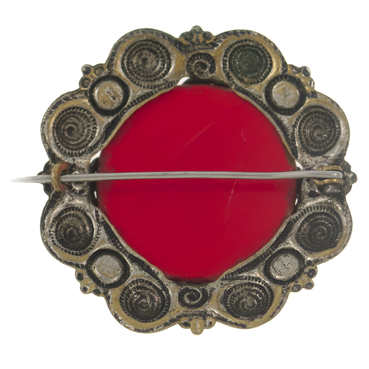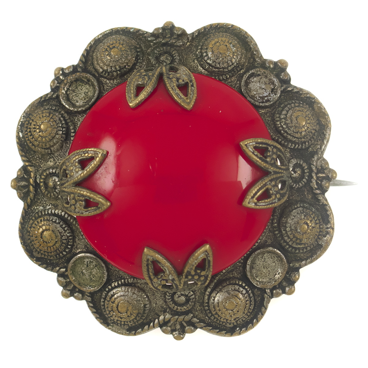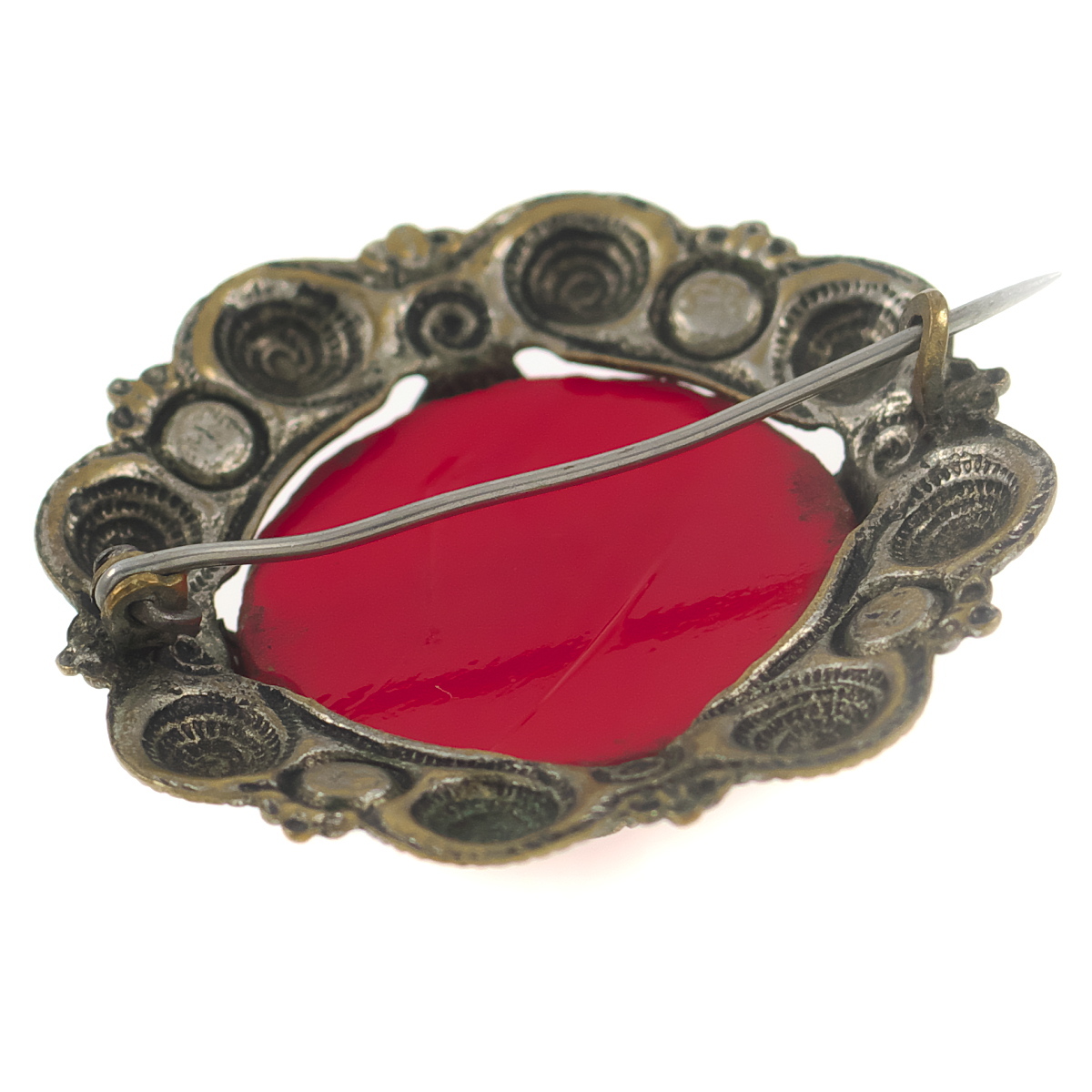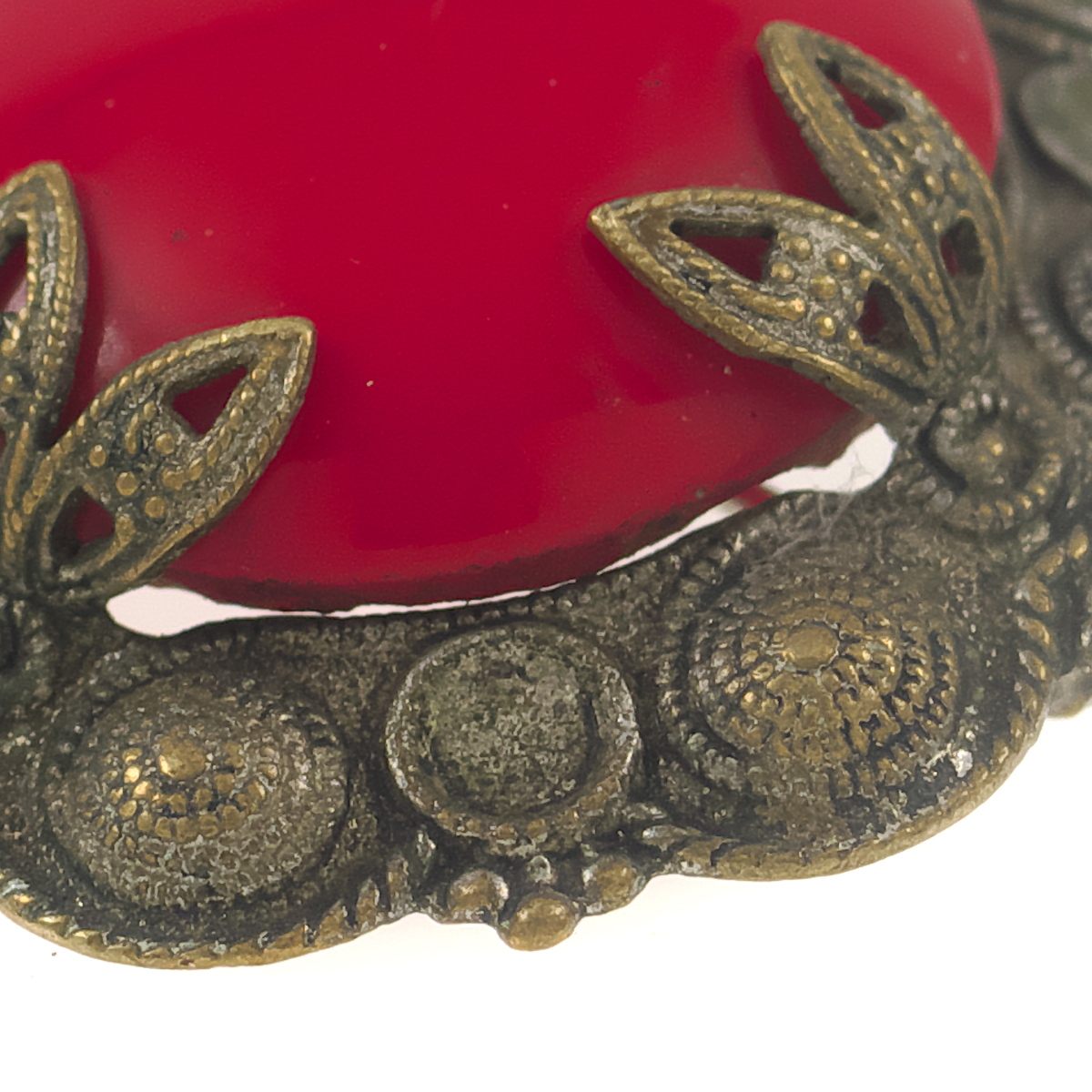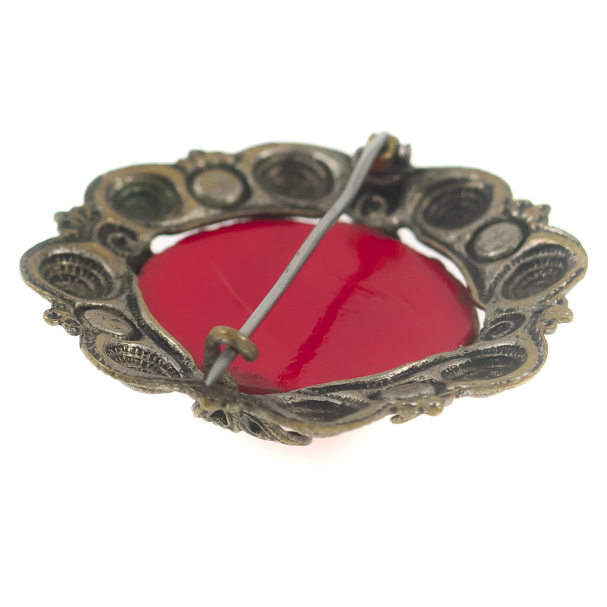UK3999◆ フラワーモチーフ レッド系カボションストーン チェコ アンティーク リーフ ◆ ヴィンテージブローチ ◆ イギリス 英国 ◆