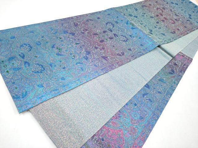 | 【正絹】 状態は締めてはおりますが 特に目立ったシミ汚れなどもなく大変良い状態です。 過去にない幻想的な輝き、光の当たる角度により変化する無限の色彩 「織の宝石」「20世紀最大の織物」と言われ、 普通の織物と違う三次元に横糸を立体的に織り込んでいく特殊な工法、 古典柄の平面的な文様だけではなく、 実際の景色を実写的に表現することが可能な唯一の織物です。 明るい場所では自然な輝きを、 特に薄暗い明度差のあるところでは、見る人の向きによって幾通りにも 色彩と輝きが変化し、人々の心を魅了する幻想的な夢の織物。 ダイヤモンドカットと称される佐波理の織工法、是非末永くご愛用下さいませ。 大変上質な極上の逸品になります。 お安く出品致しますので、是非この機会にいかがでしょうか?