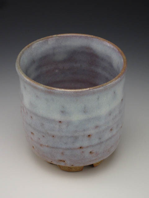 今回出品の作品は、伝統的な技法に現代的な感性を融合させた作風の窯変白萩湯呑です。大道土に長石釉を掛け登り窯焼成による窯変が見事です。大振りですばらしい出来栄えの萩窯変湯呑をご家庭に、ご贈答に。是非この機会にお求め下さい。