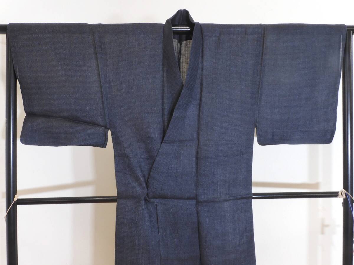 <銀の斧>麻・男性用重要無形文化財宮古上布着物・最高級上布・亀甲・琉球藍・苧麻・手績み手織り