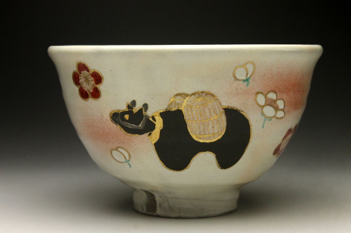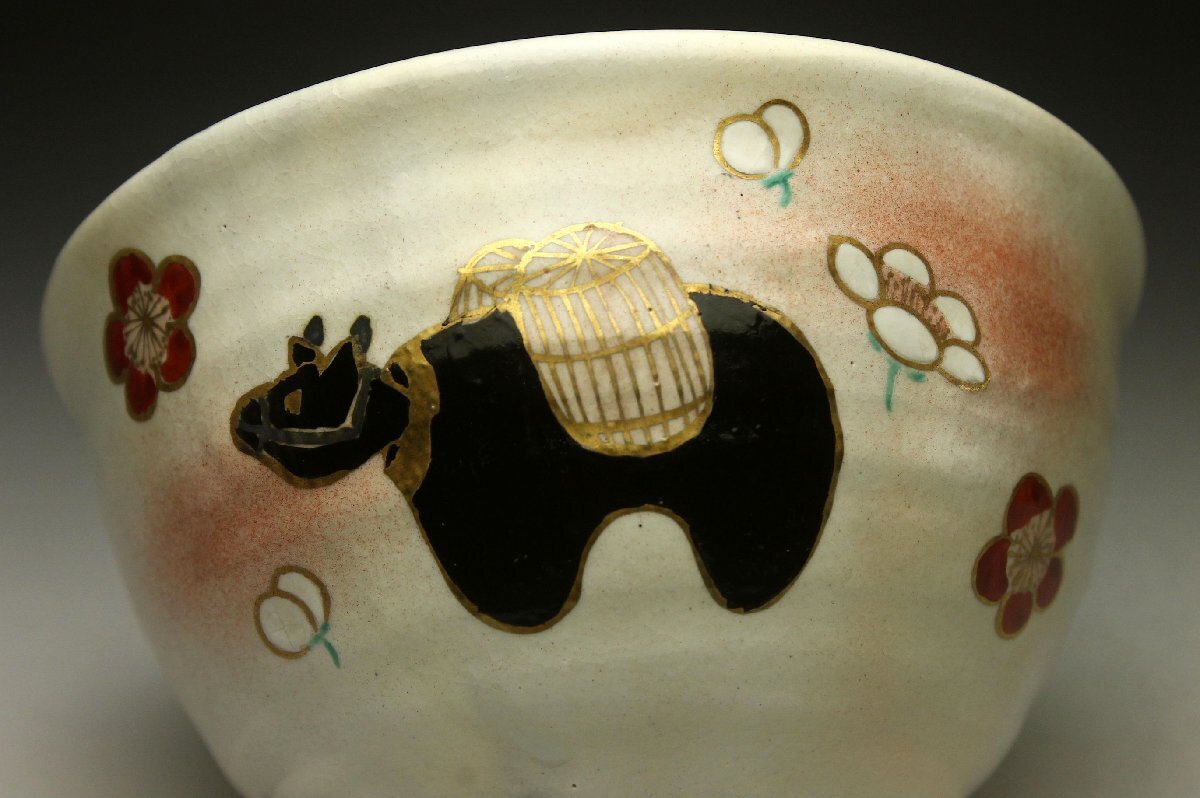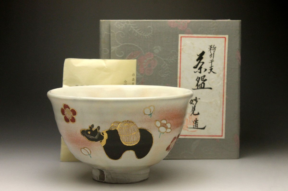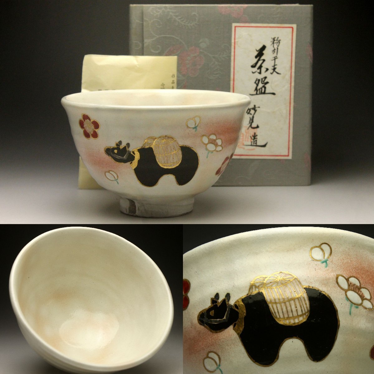 【余韻】 京焼 今岡妙見 粉引茶碗 干支 丑★茶道具 無傷美品<同梱可>