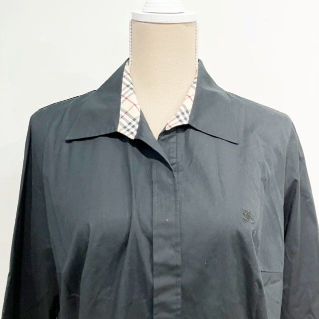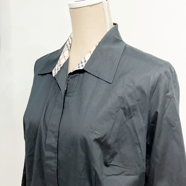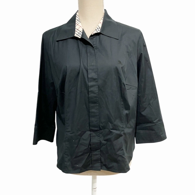 バーバリー ロンドン BURBERRY LONDON シャツ ブラウス ノバチェック 比翼 黒 ブラック 13 約L-XL ■WY レディース