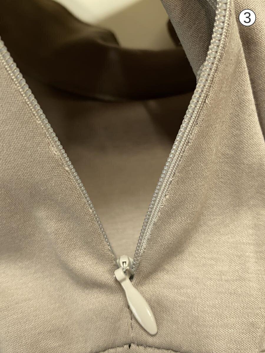 | (1)袖縫い目、ほつれあり (2)正面、裾辺り汚れあり (3)ファスナー周辺、擦れ傷あり 全体的に使用感がございます。 |