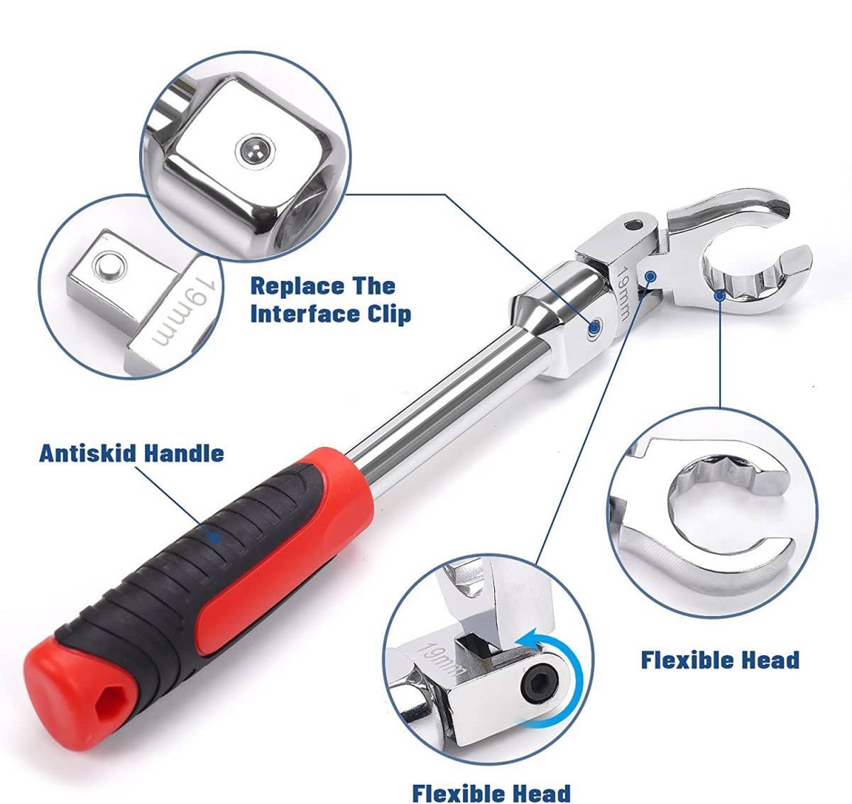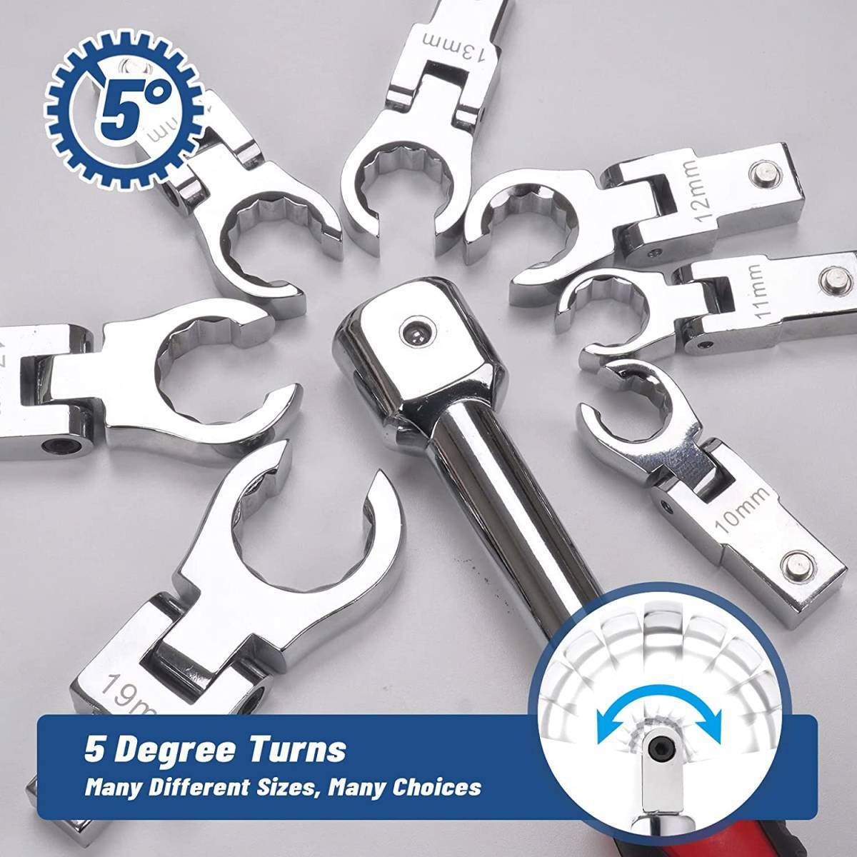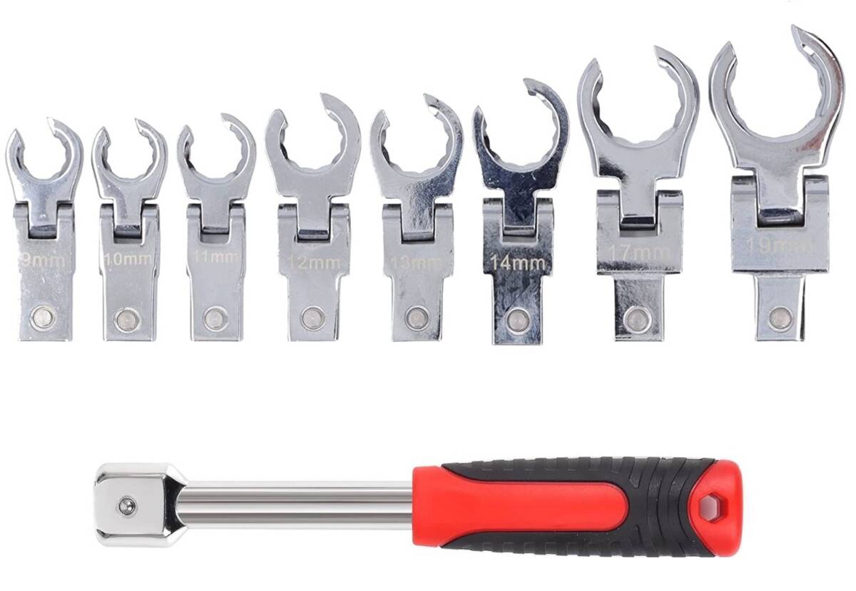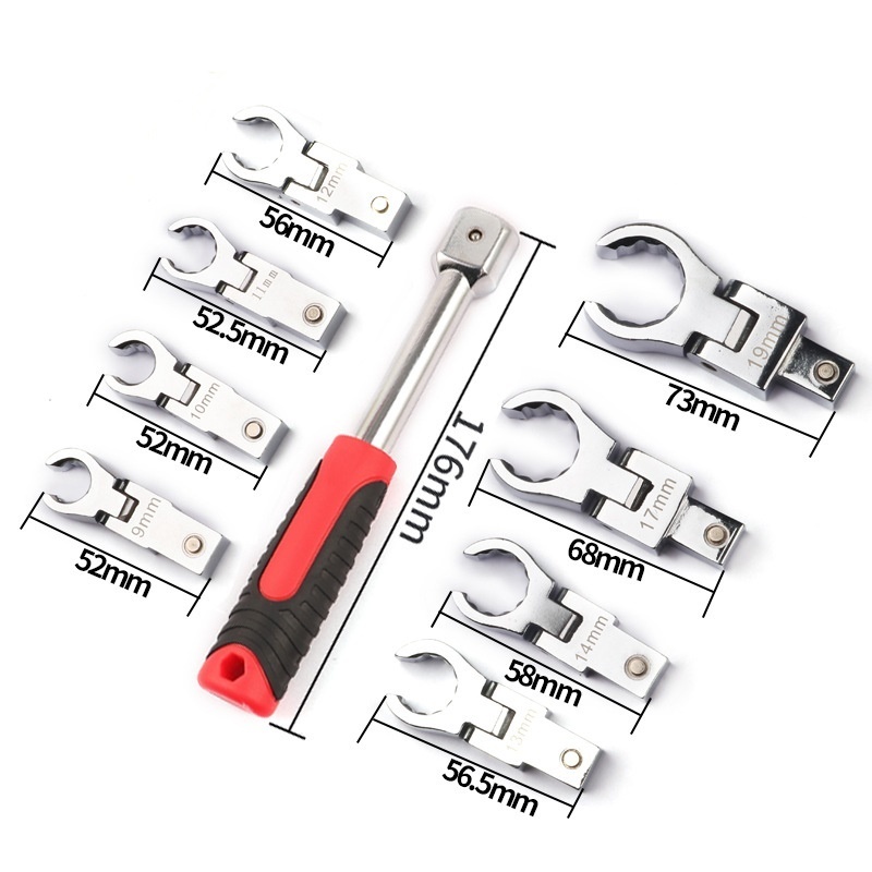 差し替え式☆フレアナットレンチ☆ クローフットレンチ9~19mm☆8点セット