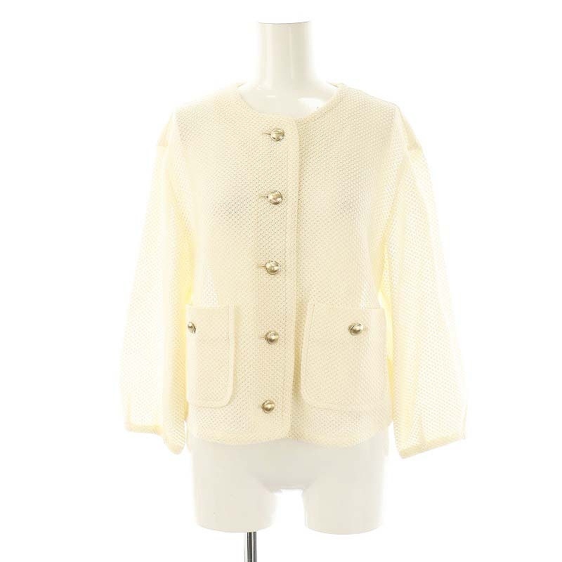 ノーリーズ Nolley's ソフィー sophi 23SS ウォッシャブルメッシュラッセルカーデジャケット 透かし編み 38 アイボリー /CX ■OS レディース