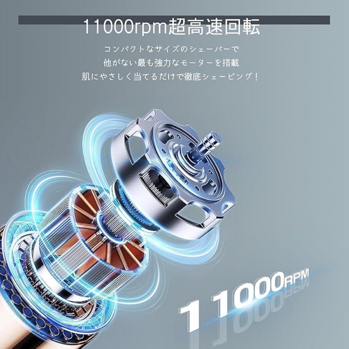 この最新型のポータブル電動シェーバーは、65dBの低騒音を実現した高速モーターを採用して、11000rpm回/分超高速回転で髭をしっかりキャッチし、肌にやさしく当てるだけで細かい髭や、濃い髭などを徹底シェービングします。革新な自動研磨システムを搭載して、常にシャープな切れ味を続きます。