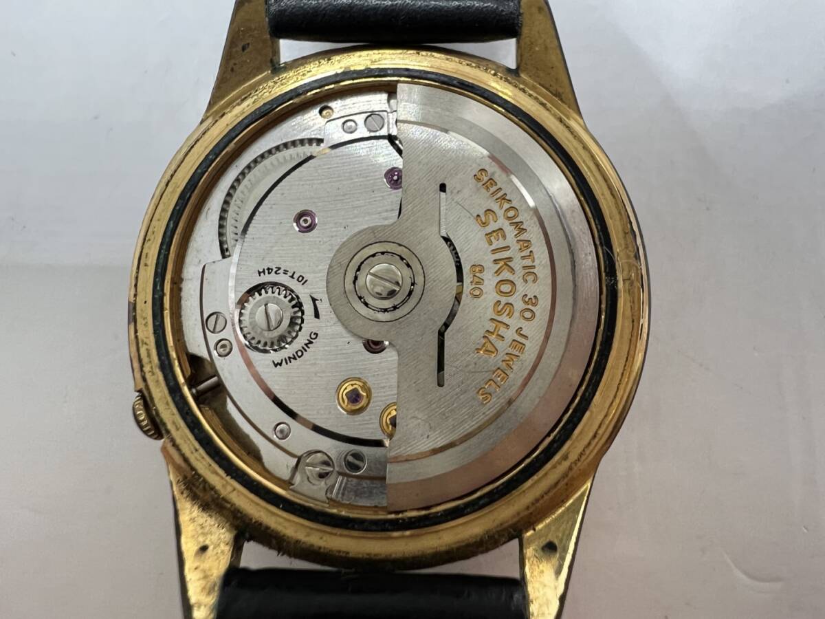 7B) 稼働品 SEIKO Seikomatic slimdate セイコー マティック スリムデイト ラウンド 腕時計 メンズ 3針 デイト 金 文字盤 ゴールド 0731
