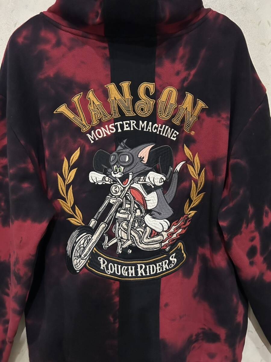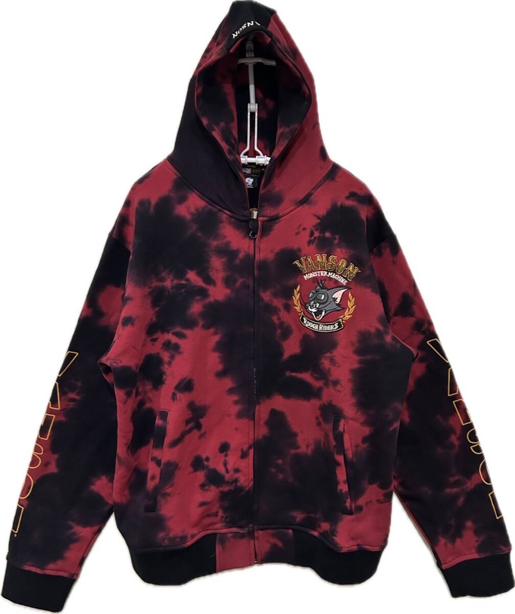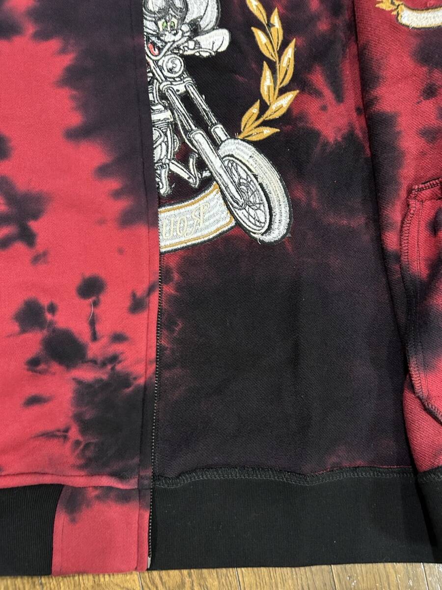 *バンソン VANSON×トムとジェリー TOM&JERRY バイク ロゴ 刺繍 タイダイ柄 ジップパーカー XXL         BJBE.G