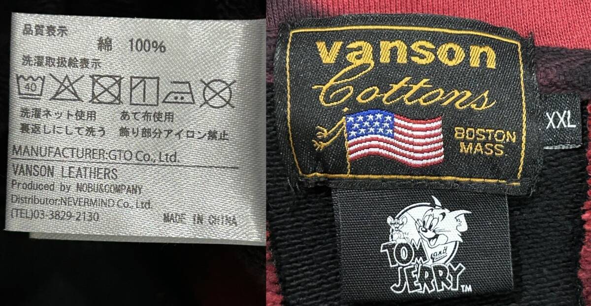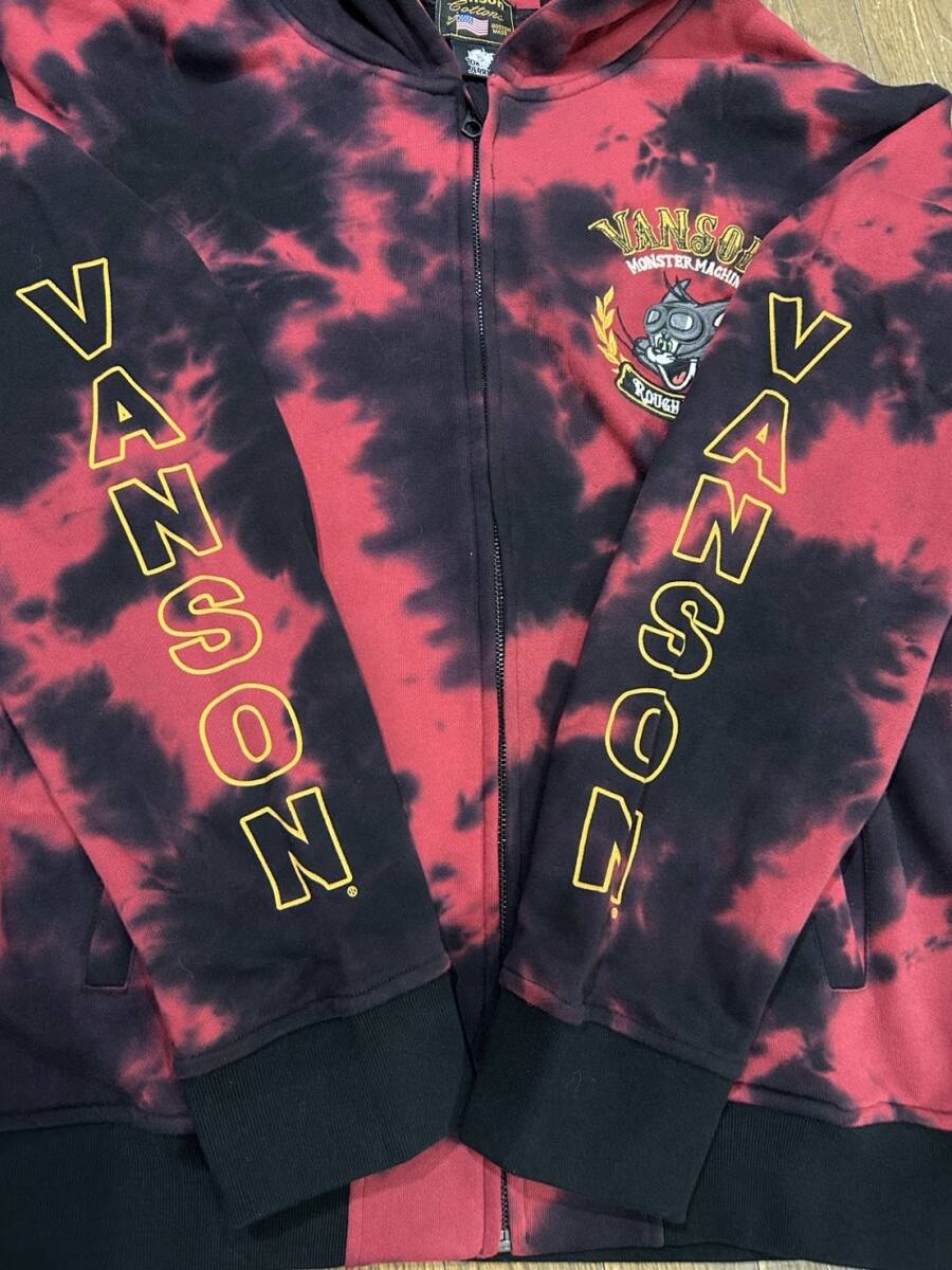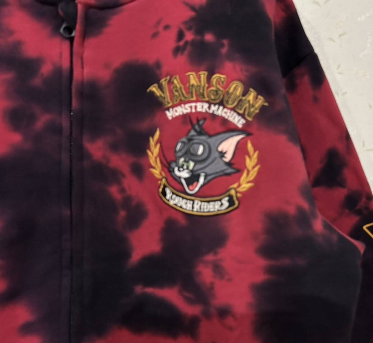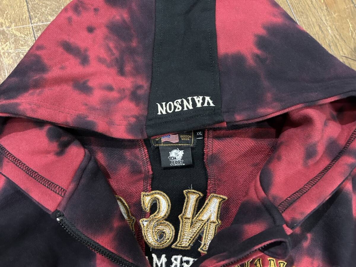 *バンソン VANSON×トムとジェリー TOM&JERRY バイク ロゴ 刺繍 タイダイ柄 ジップパーカー XXL         BJBE.G