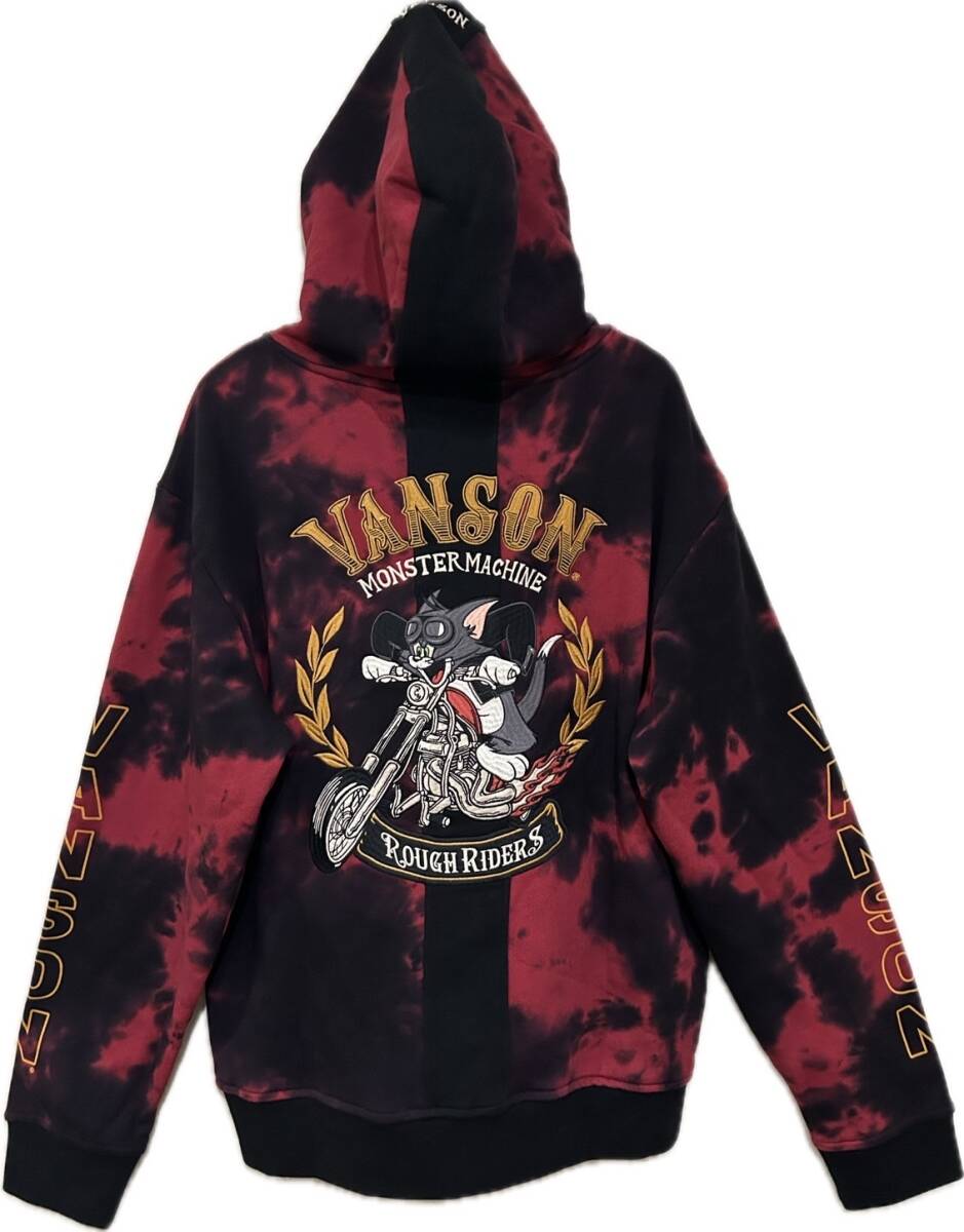 *バンソン VANSON×トムとジェリー TOM&JERRY バイク ロゴ 刺繍 タイダイ柄 ジップパーカー XXL              BJBE.G