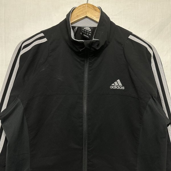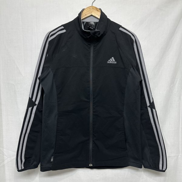 〇adidas アディダス ロング スリーブ 長袖 フル ジップ アップ ジャケット スポーツ トレーニング ランニング ウェア L 黒 ブラック