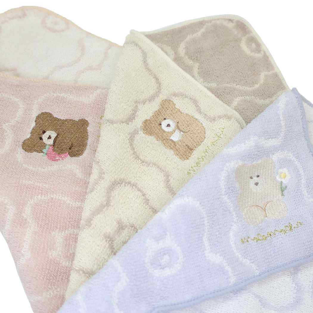 ミニタオル ほっこりモコモカ タオルハンカチ ハンカチタオル クリームXフラワー クーリア