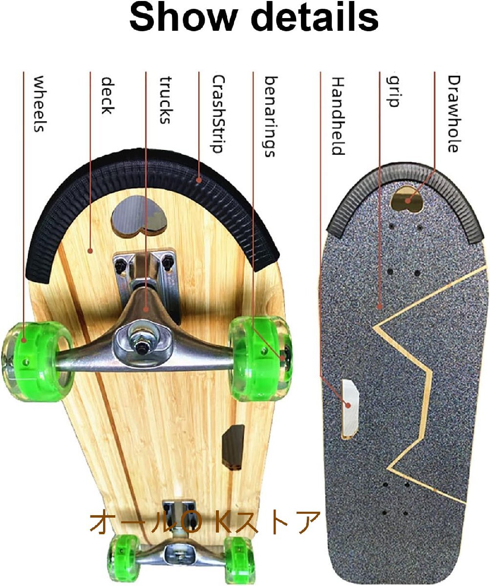 ステアリング能力の向上:アップグレードされたサーフボードスタンドを使用すると、このスケートボードは回転するのに必要な力が少なくなり、ステアリングアークが大きくなります。最適なパフォーマンスを得るには、ブラケットの PU を柔らかくする必要があります。