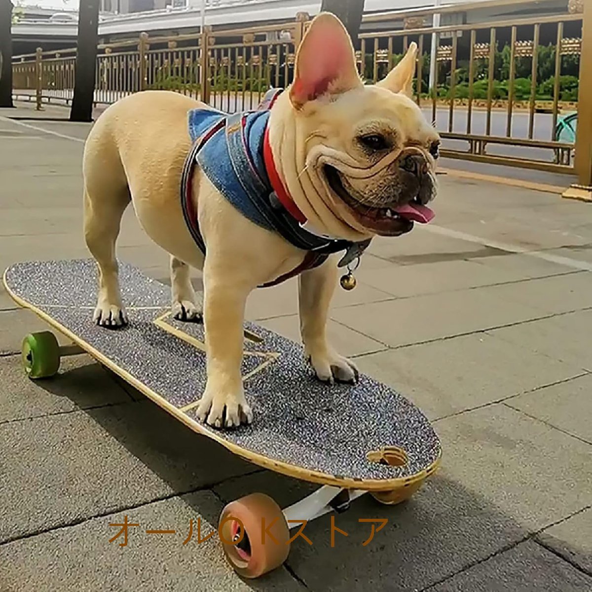 WJW サーフスタンド付き犬スケートボード ペットスケートボード イングリッシュフレンチブルドッグ用のカラフルなPUホイール付きスケートボード、強力なボード表面、重力ブラケット 85X27cm