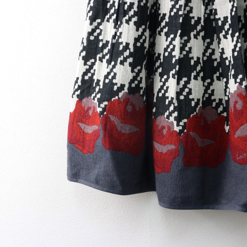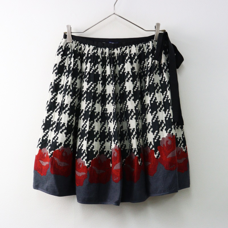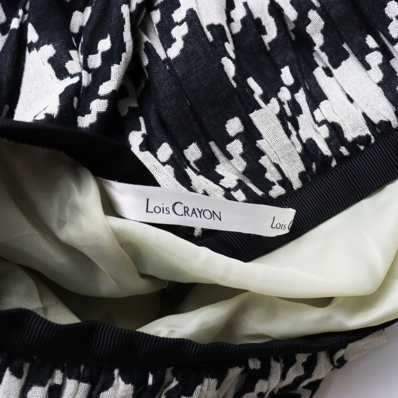 ロイスクレヨン Lois CRAYON 千鳥フラワージャガード ギャザーフレアスカート M モノトーン /花柄 フラワー【2400014528091】