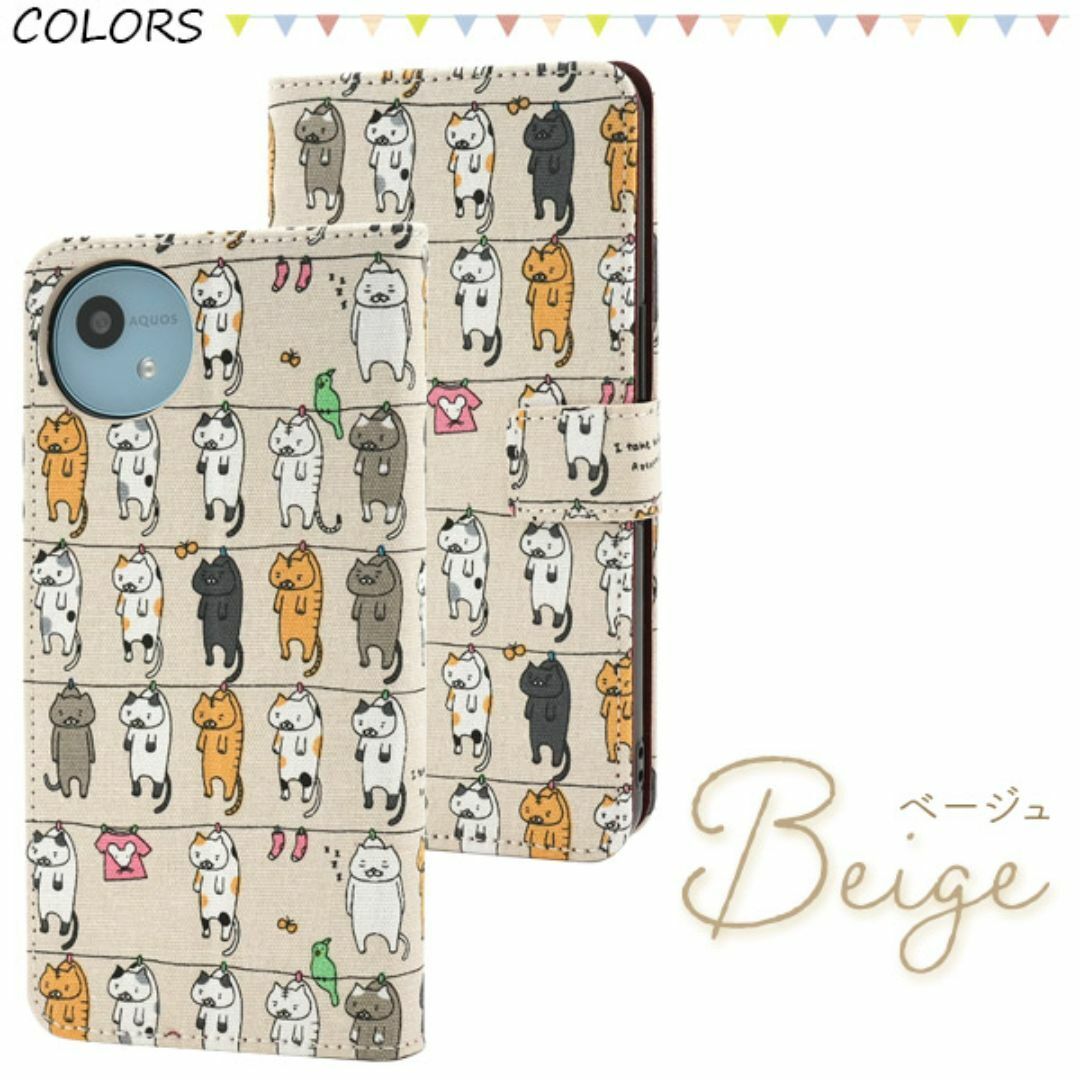 いっぱいの猫達が干されている柄の手帳型ケースです。