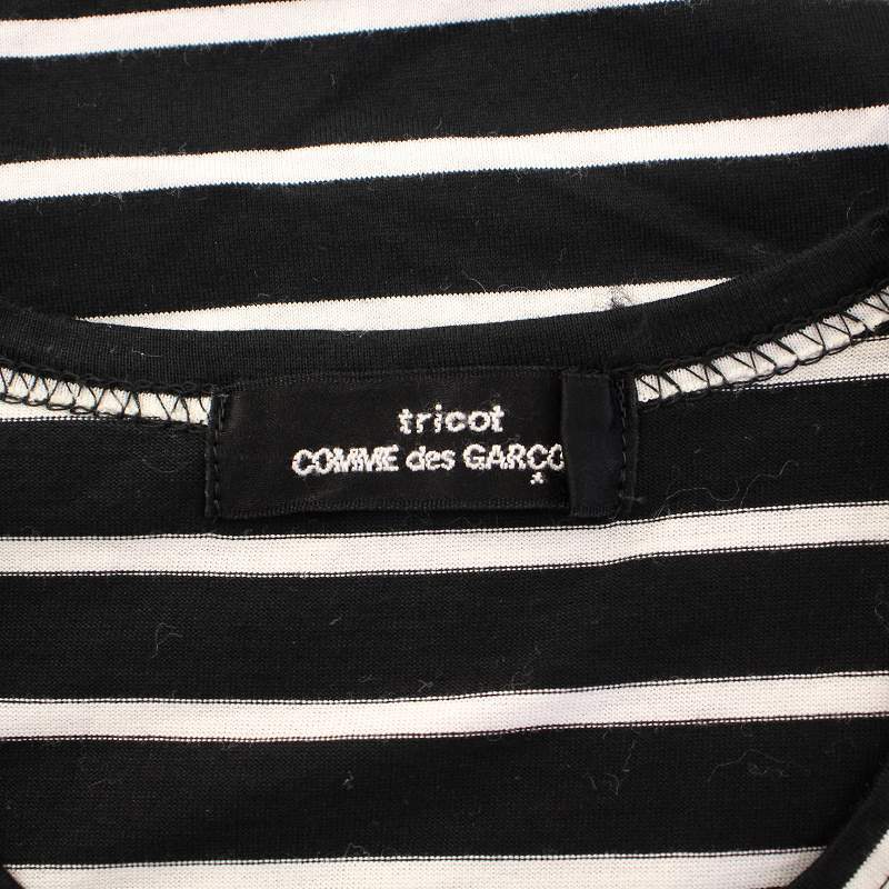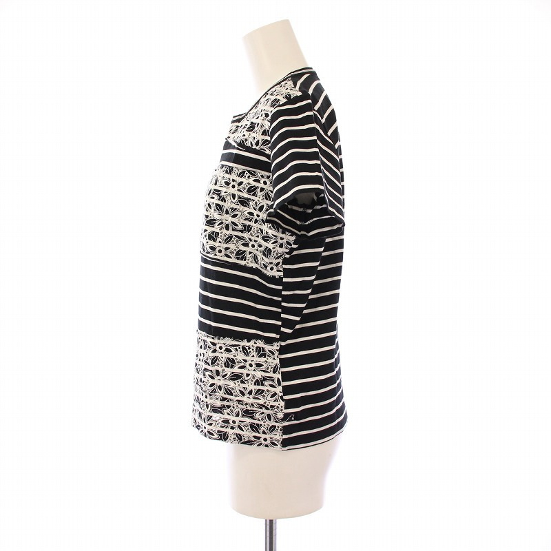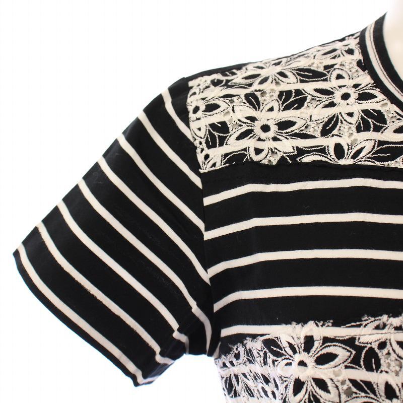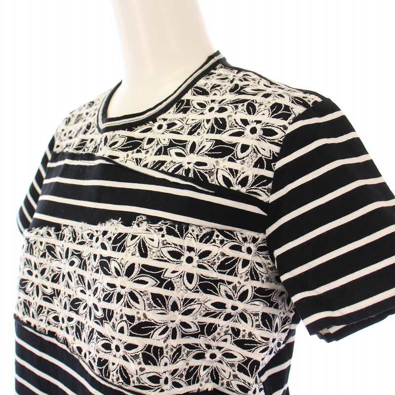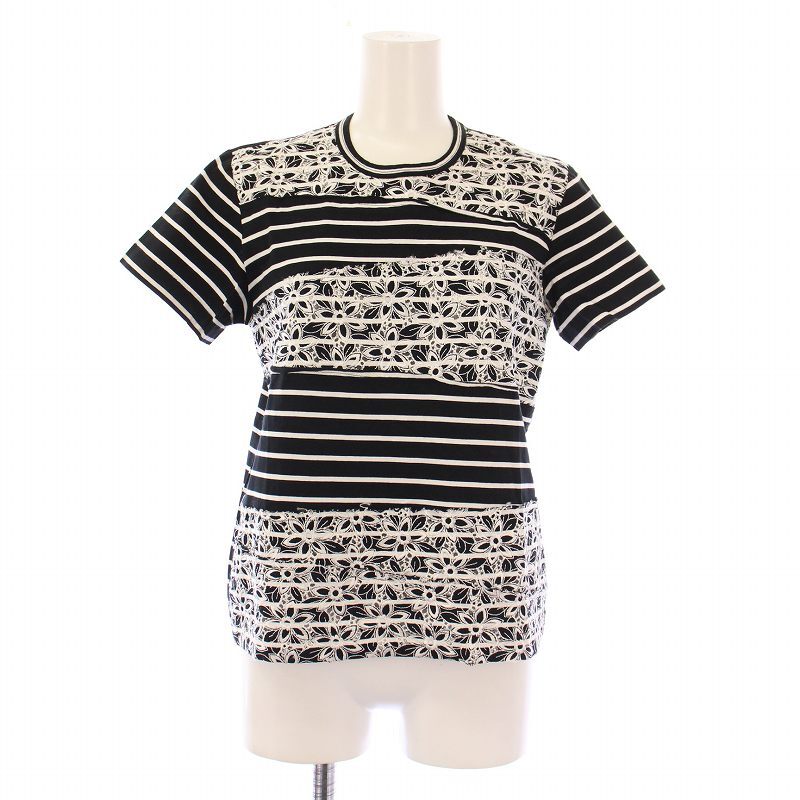 トリココムデギャルソン tricot COMME des GARCONS Tシャツ カットソー 半袖 クルーネック 刺繍 切替 花柄 ボーダー柄 黒 ブラック 白