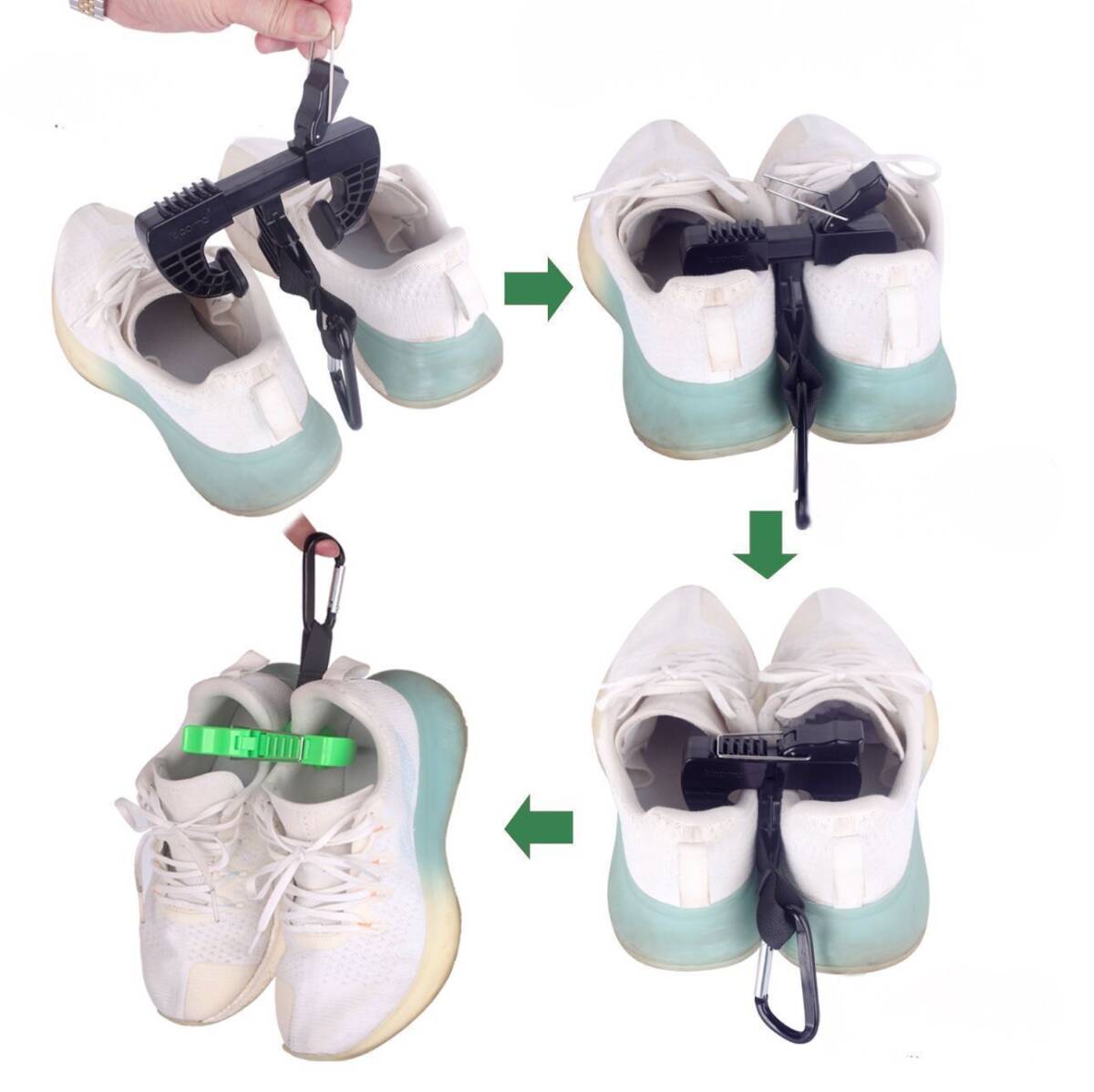 ・シューズをクリップにかければどのような靴でも持ち運べます。