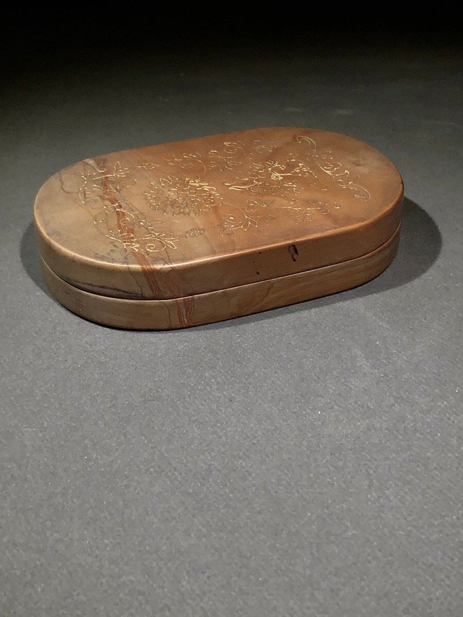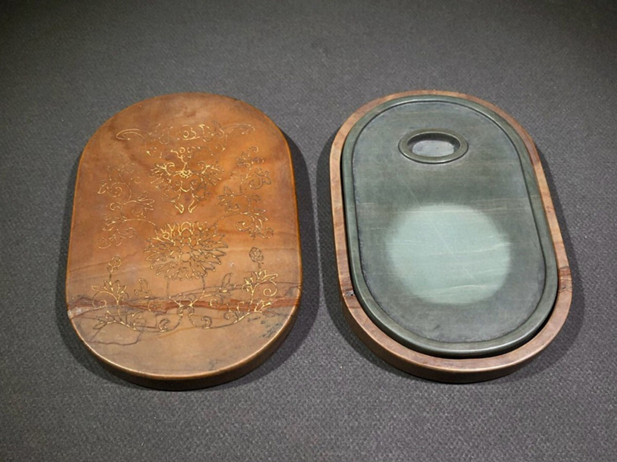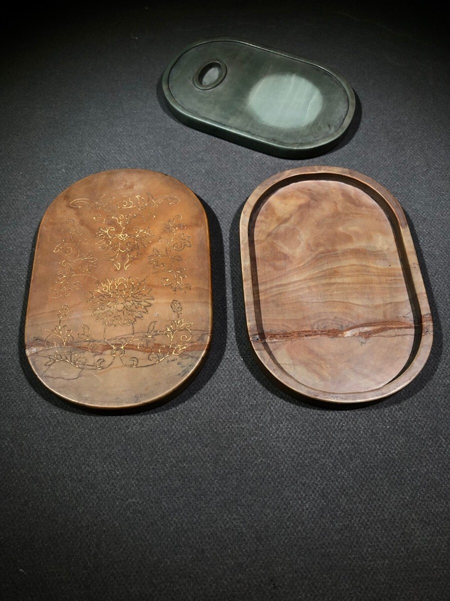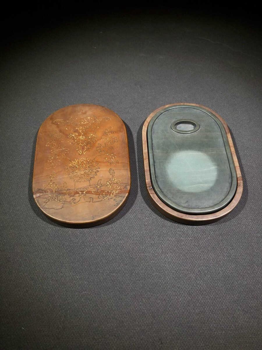 【瓏】黄松花石彫 富貴花開文房套硯 阮常生銘 清時代 手彫り 文房四寶 書道具 中国古硯 古美術 蔵出