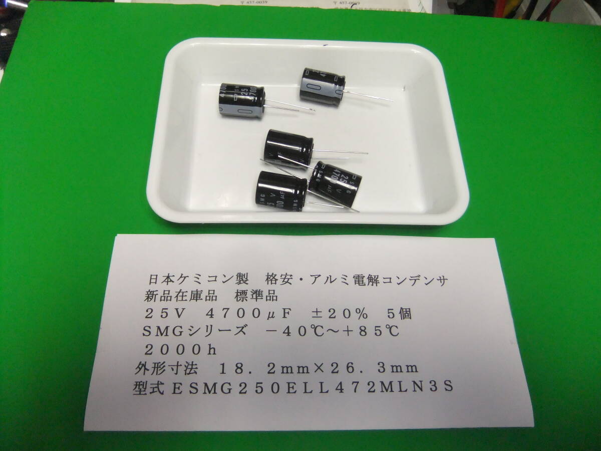 日本ケミコン製 格安・アルミ電解コンデンサ 25V 4700μF SMGシリーズ 5個 新品在庫品 A
