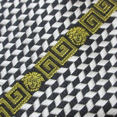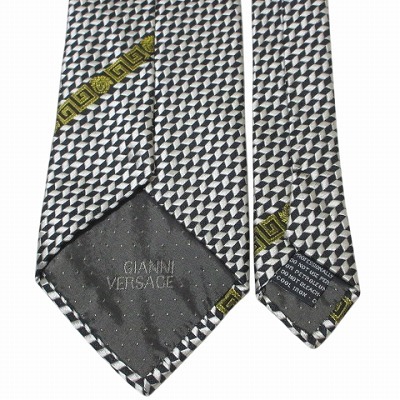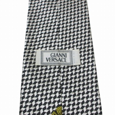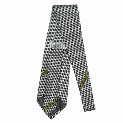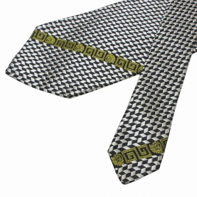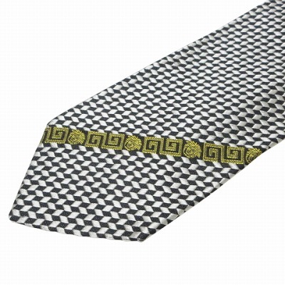 ジャンニヴェルサーチ ヴェルサーチェ GIANNI VERSACE ネクタイ ワイドタイ メデューサ チェック シルク 刺? 黒 白 X メンズ
