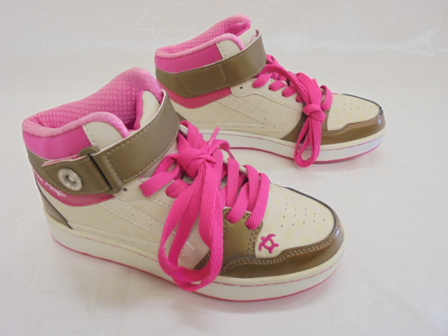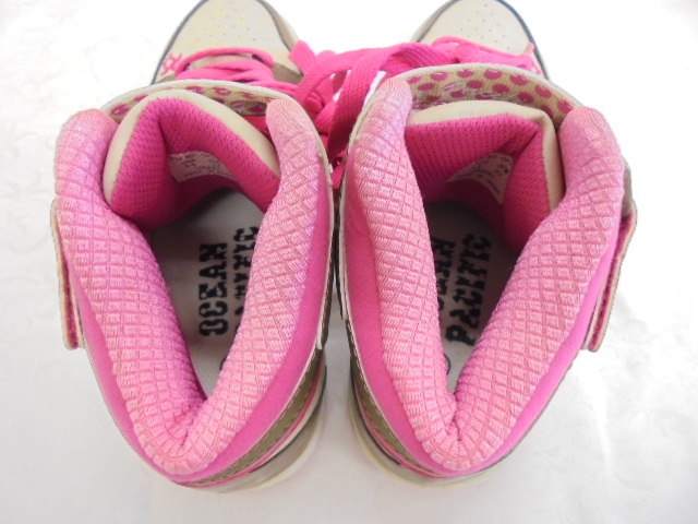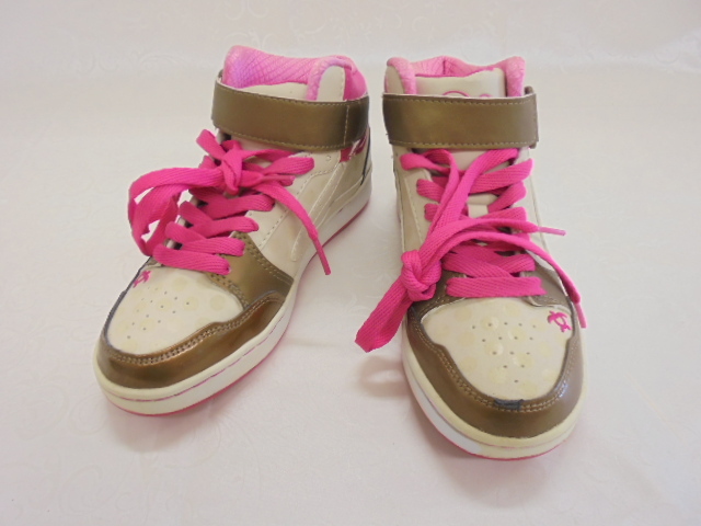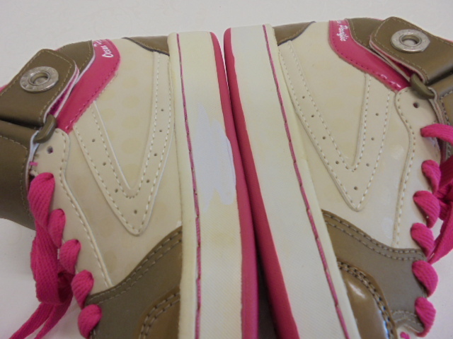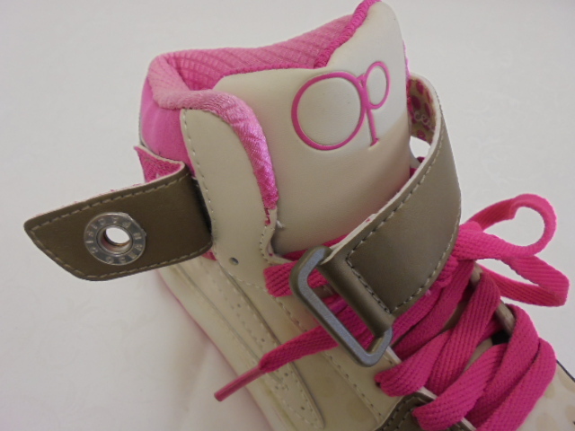 【KCM】JHKS-114-22.0★長期展示品★【OP オーシャンパシフィック】ガールズ ハイカットスニーカー ホワイト×ブロンズ×ピンク 22.0cm