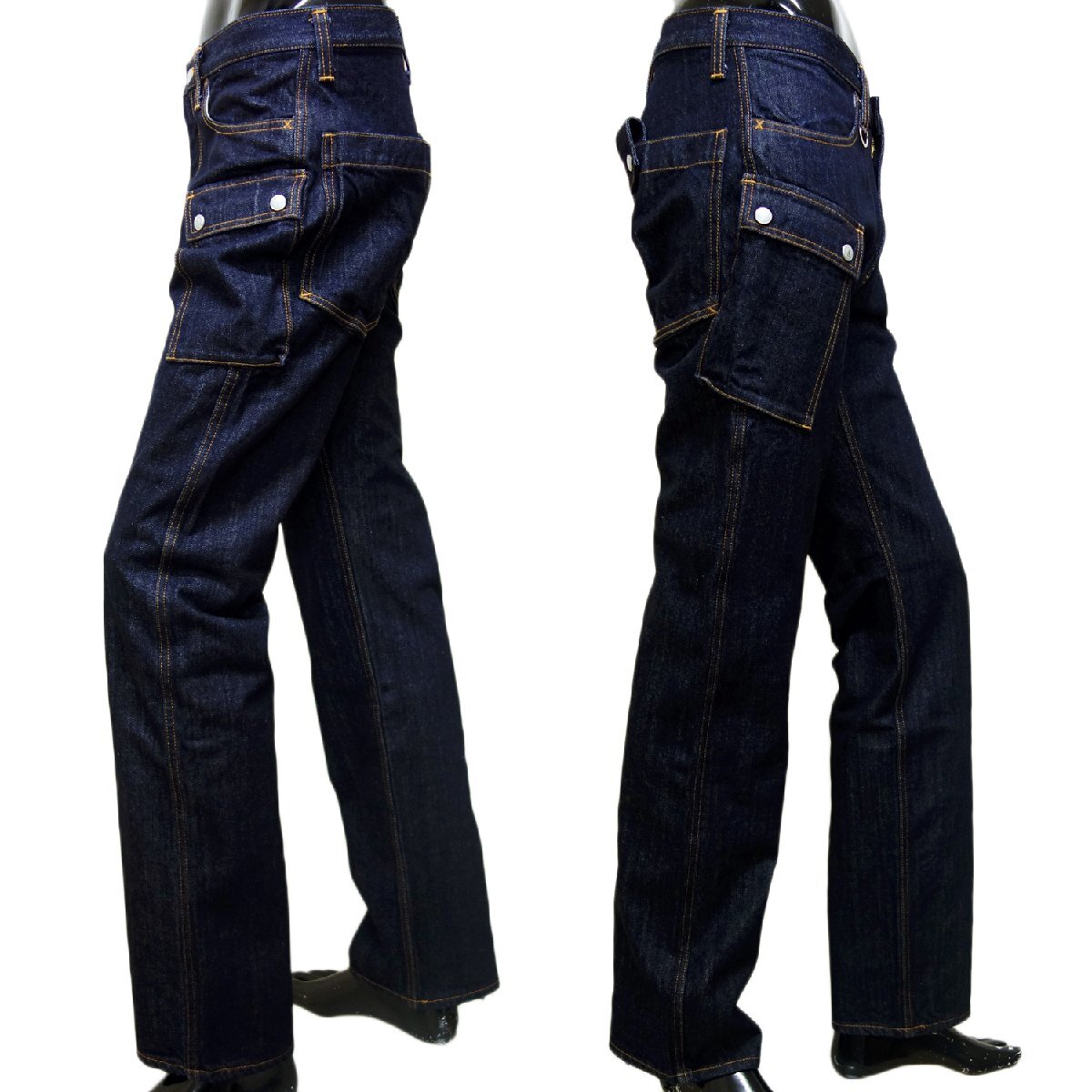 児島ジーンズのカーゴパンツです。カーゴポケットは出し入れがしやすいようポケット口が斜めになっています。また通常のカーゴパンツよりもサイドポケットの位置が高く設定されており、座った状態でもバイクに乗った状態でもサイドポケットが使いやすい嬉しい仕様になっています。一般的なミリタリーウェアには少ない経年変化を楽しむことができるのもポイントです♪またメイドインジャパンの丁寧でしっかりとした仕上がりがセールスポイントの1つです♪穿いているだけで個性を主張できて、気分も上がるオススメのパンツです♪