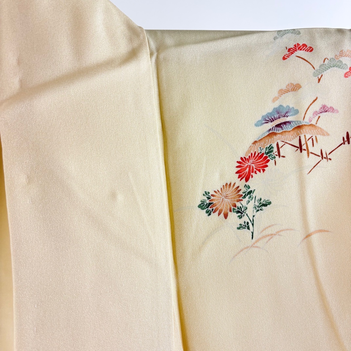 | 付下げ 秀品 家屋 松竹梅 薄黄 袷 身丈163 裄丈64 M 正絹 【中古】 |