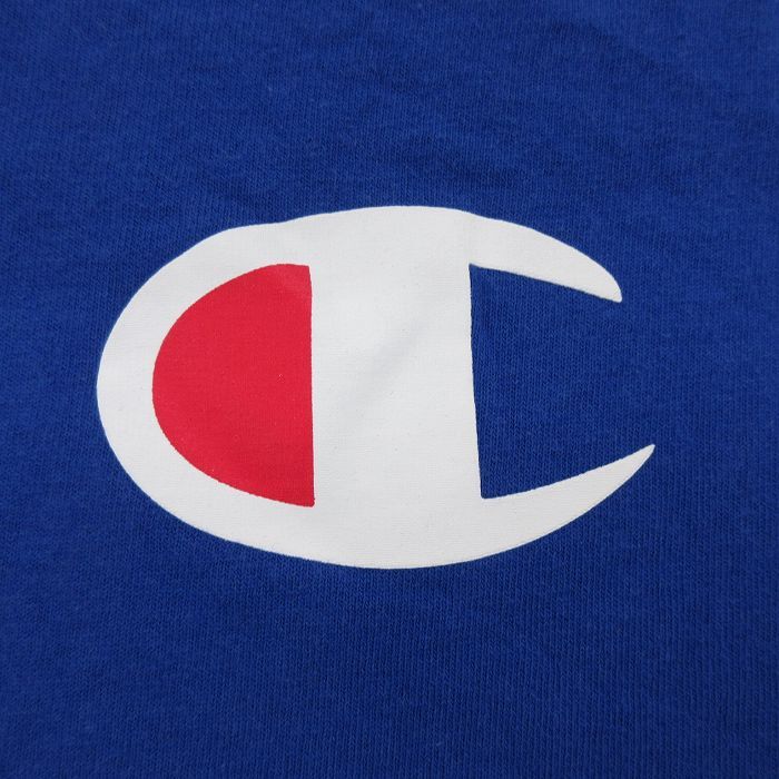 【商品名】 L★古着 チャンピオン Champion ノースリーブ Tシャツ メンズ ワンポイントロゴ コットン クルーネック 青