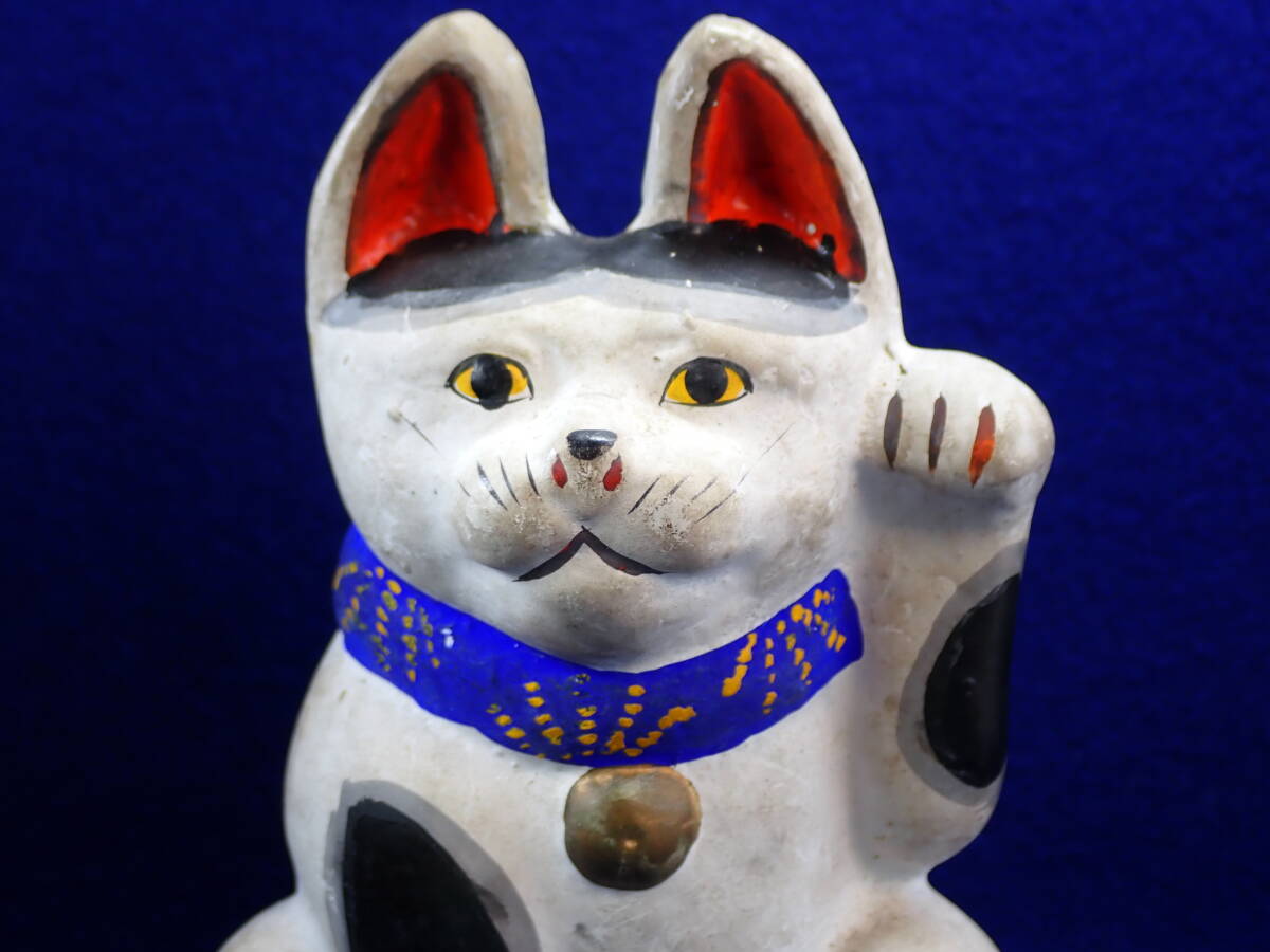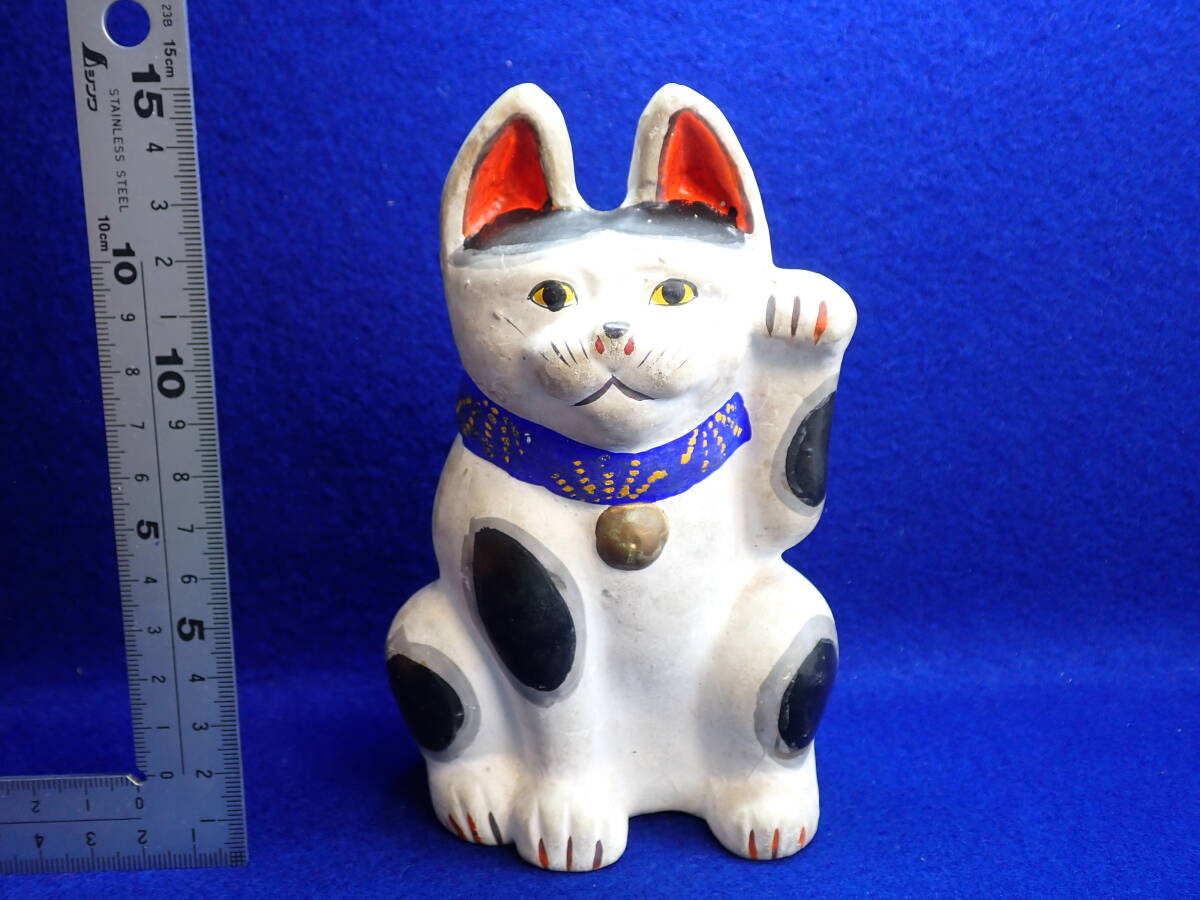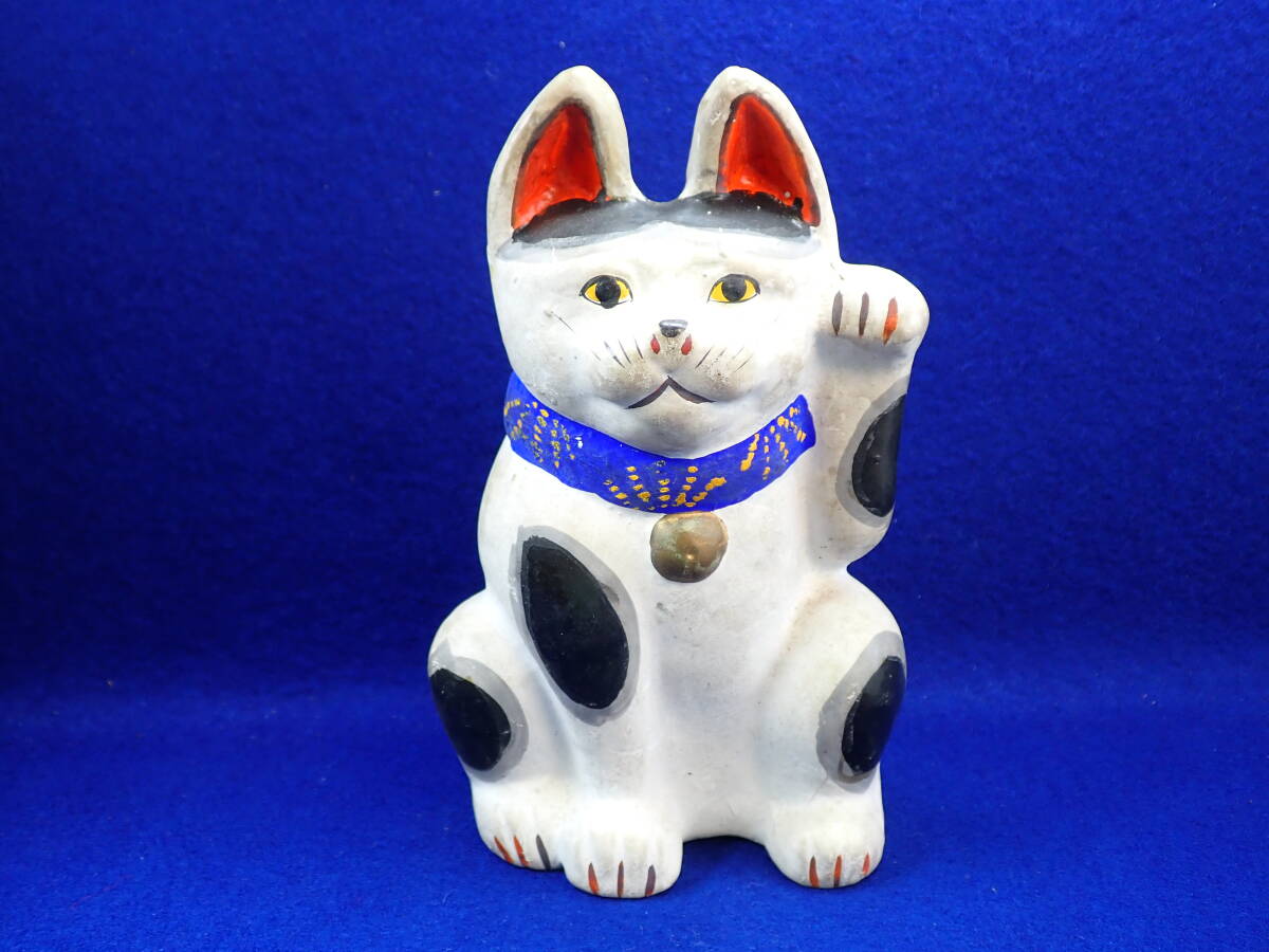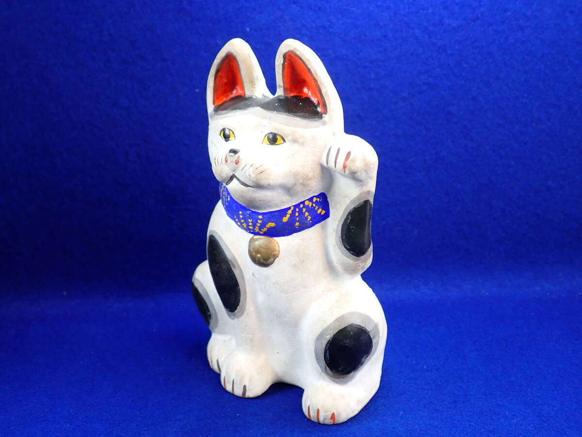 古い招き猫・・土人形・・三河猫・・縁起物・・商売繁盛 無傷・美品です の出品です