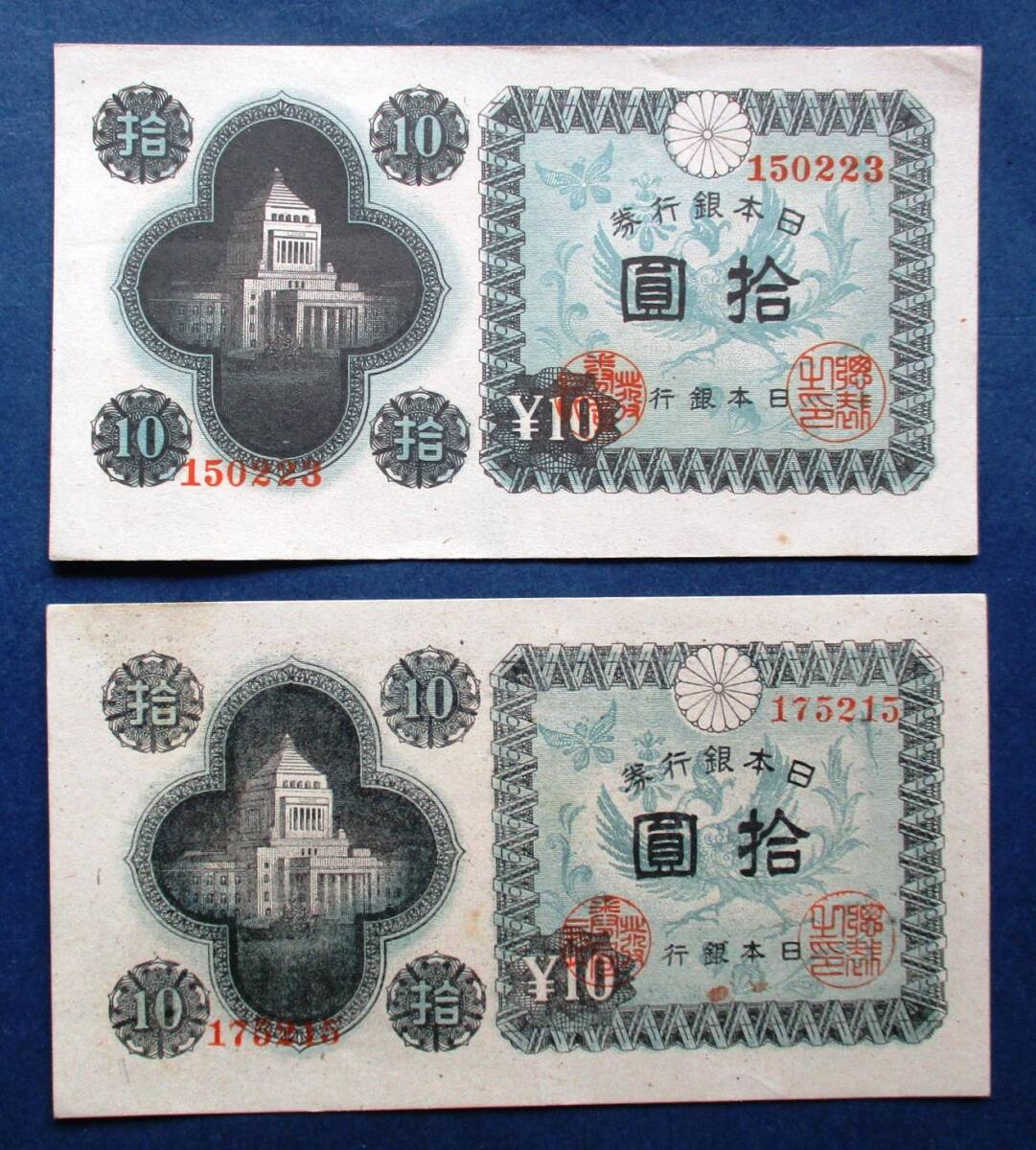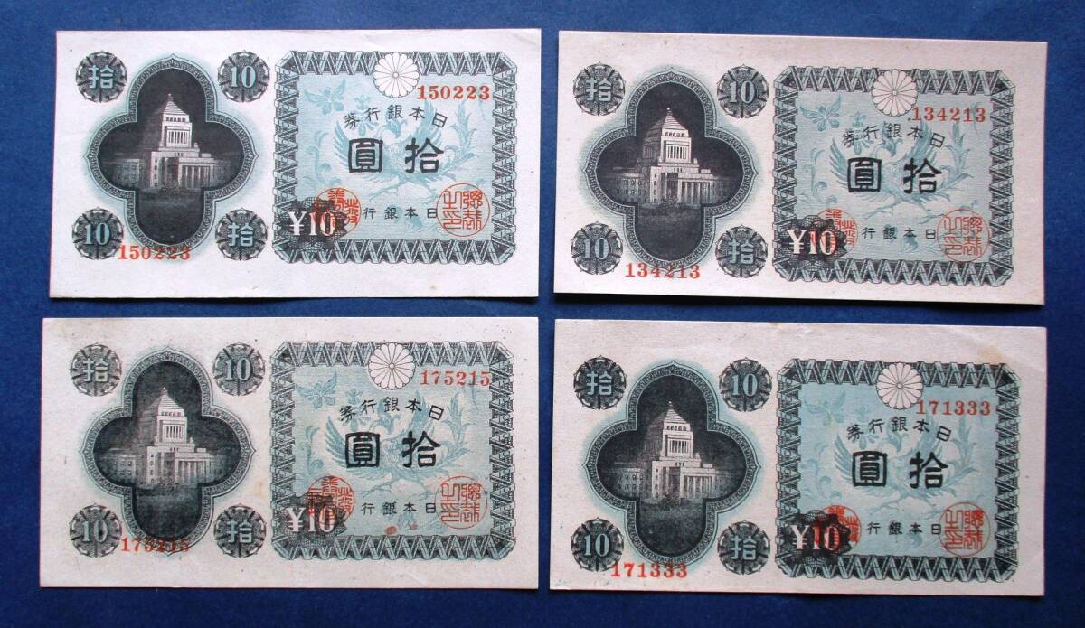 日本紙幣 議事堂10円美品以上計4枚 小石川・板橋・大阪・富士 EE47  画像参照してください。
