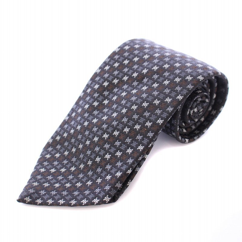 セリーヌ CELINE ネクタイ レギュラータイ シルク 総柄 トリオンフ柄 ロゴ グレー /BB ■OH ■GY14 メンズ