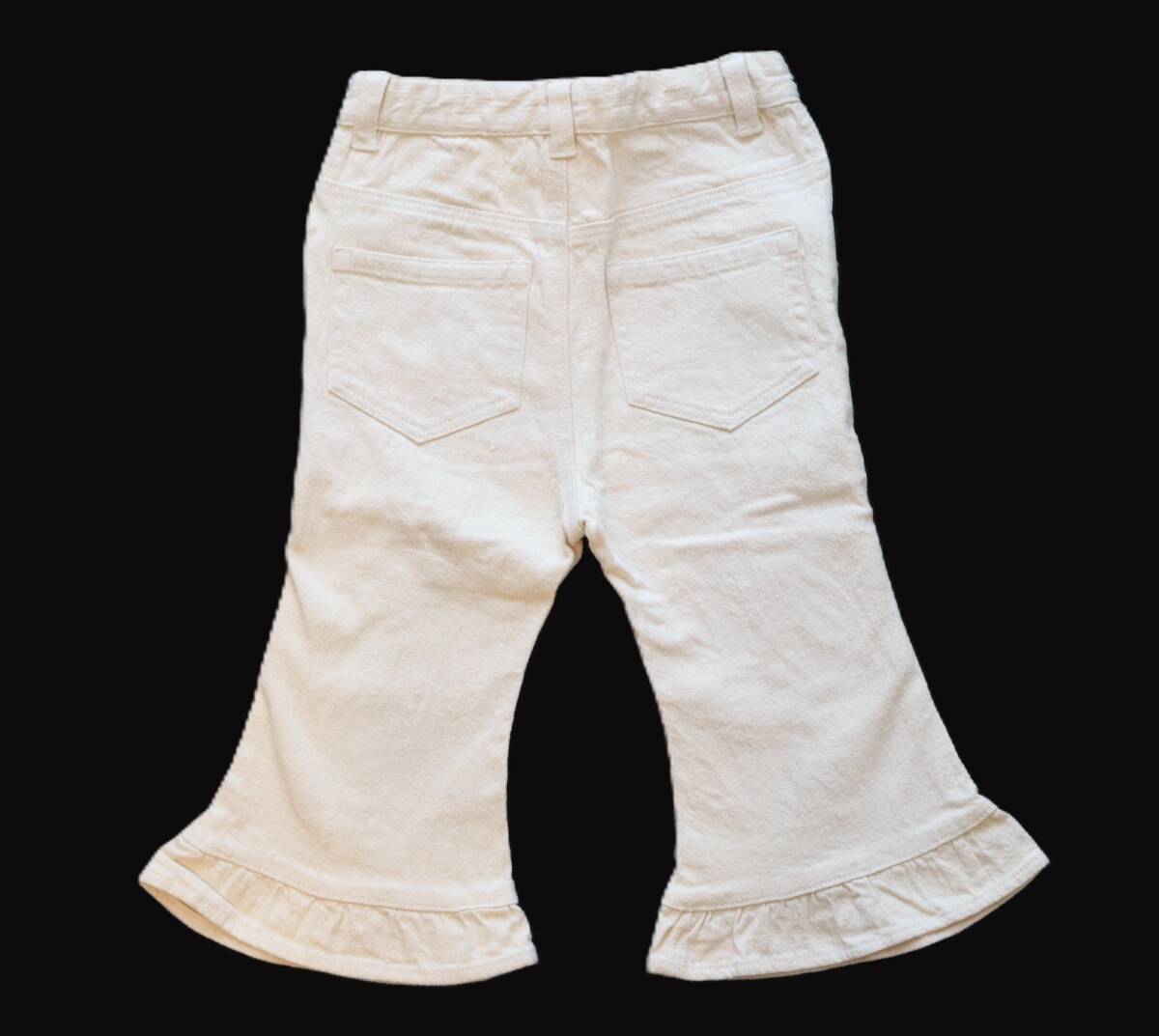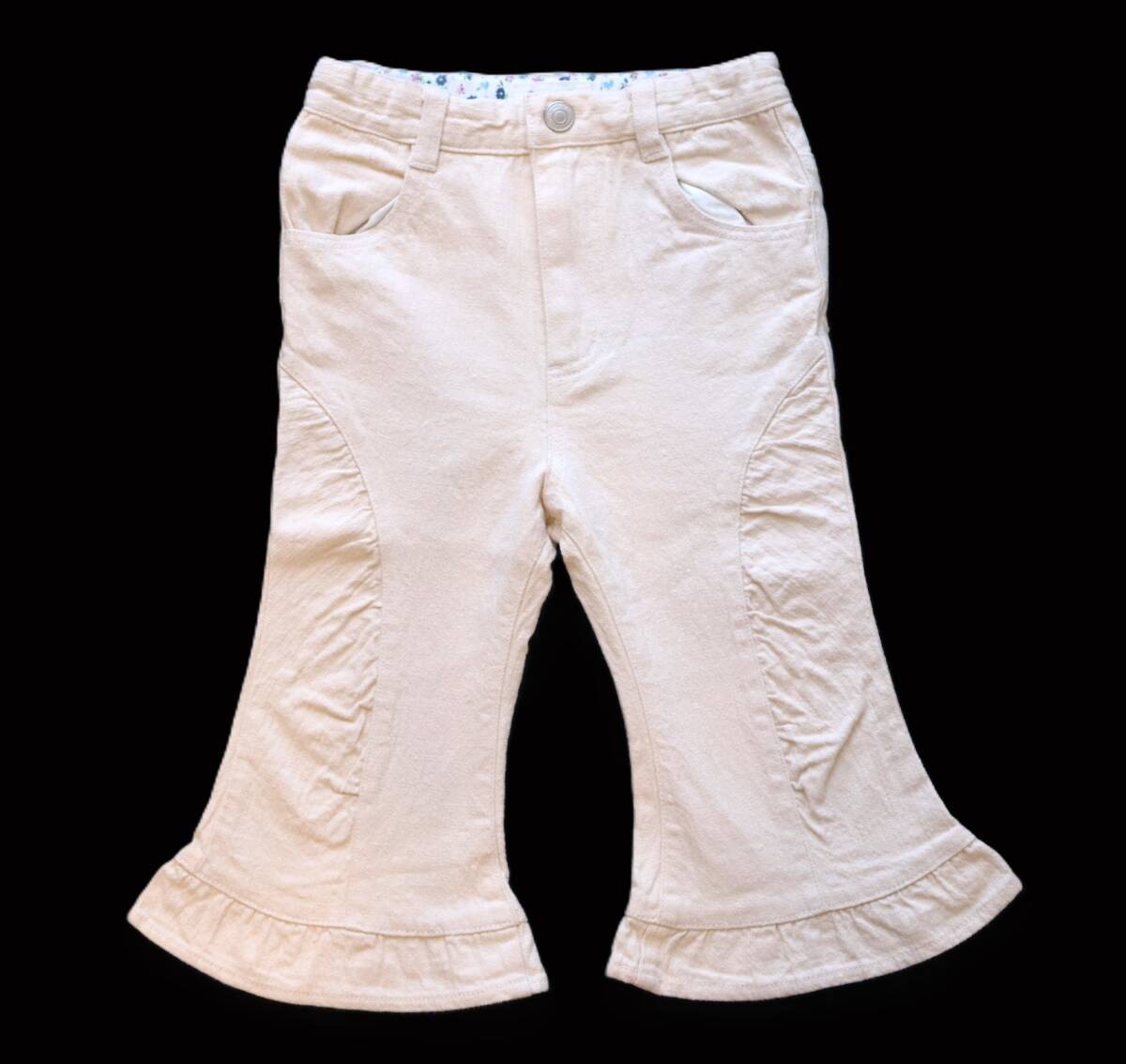 美品 セラフ Seraph 生成り色 ズボン パンツ ウエスト裏小花柄(紺 ピンク 水色) サイドギャザー切り替え・裾フリル95㎝ 90㎝