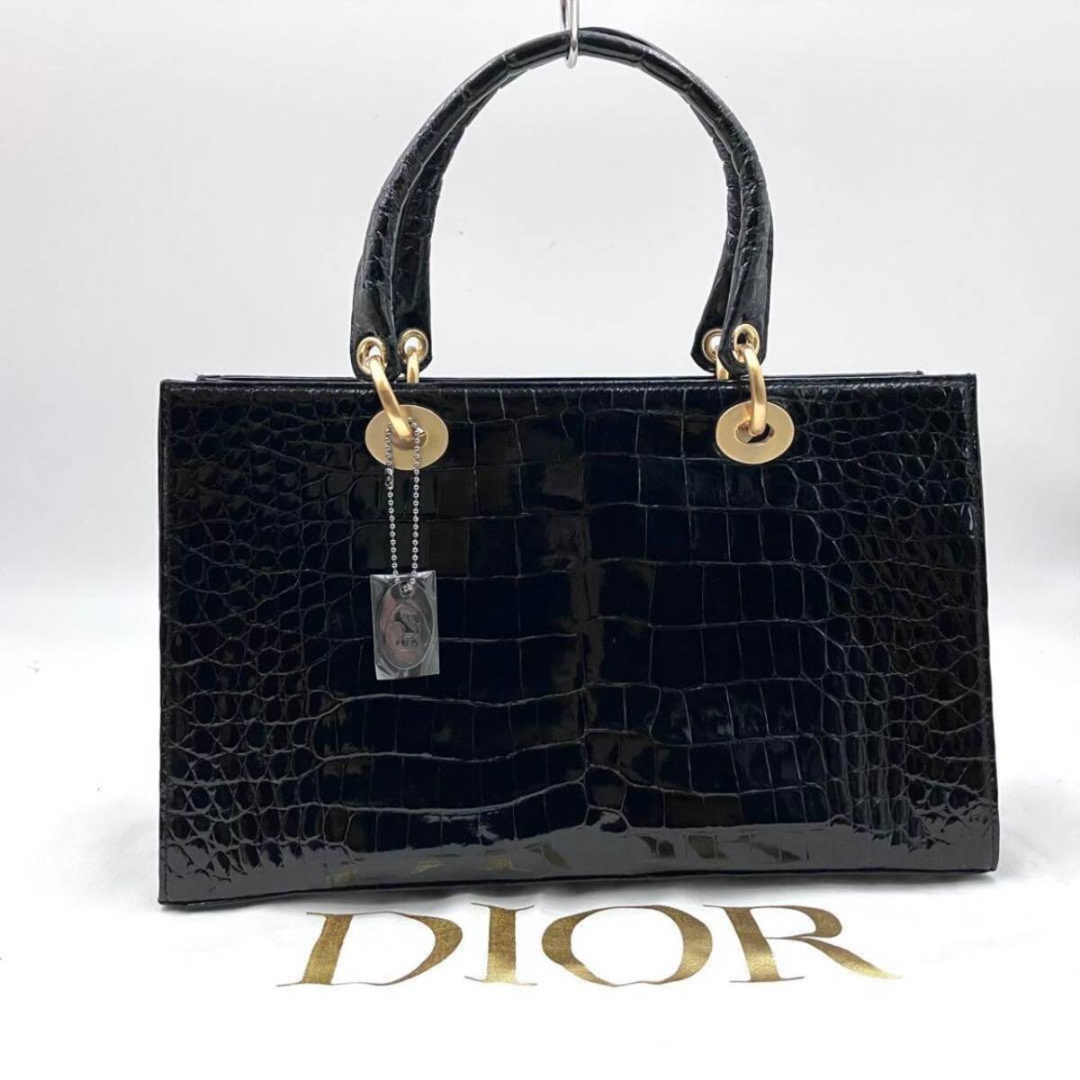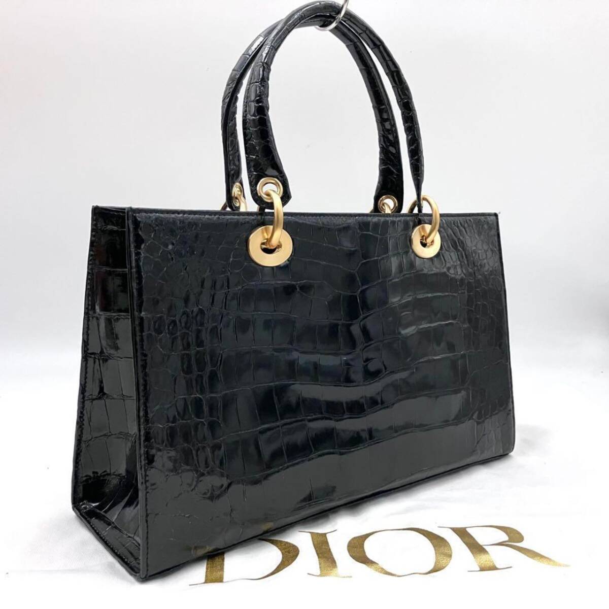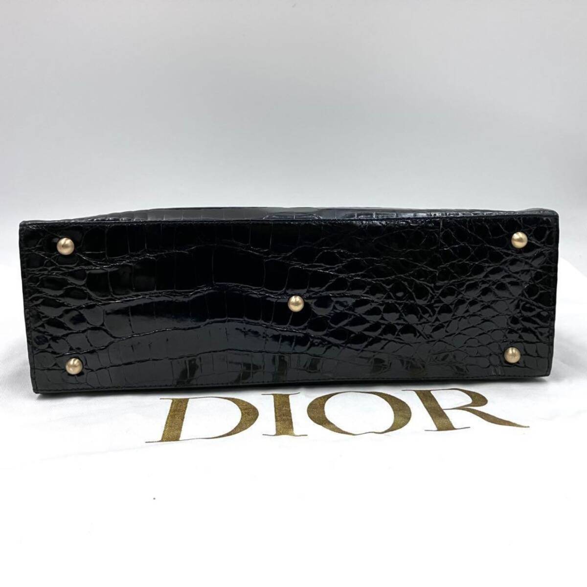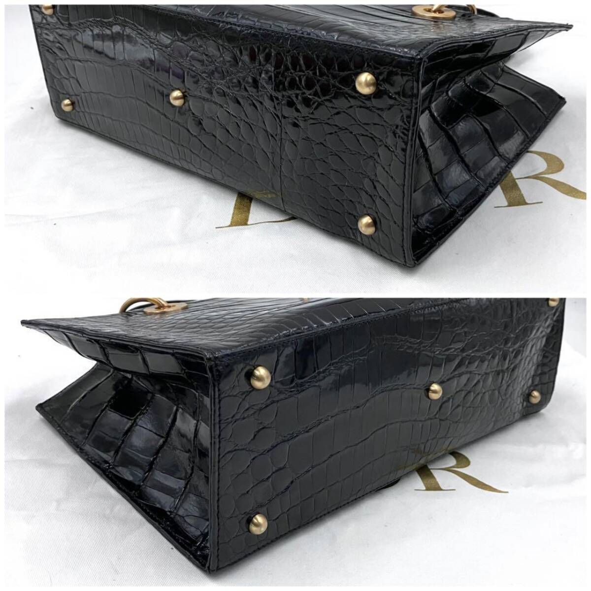 ゴールド金具 肩掛け クロコダイル 鰐革 自立 底鋲 ブラック リアル