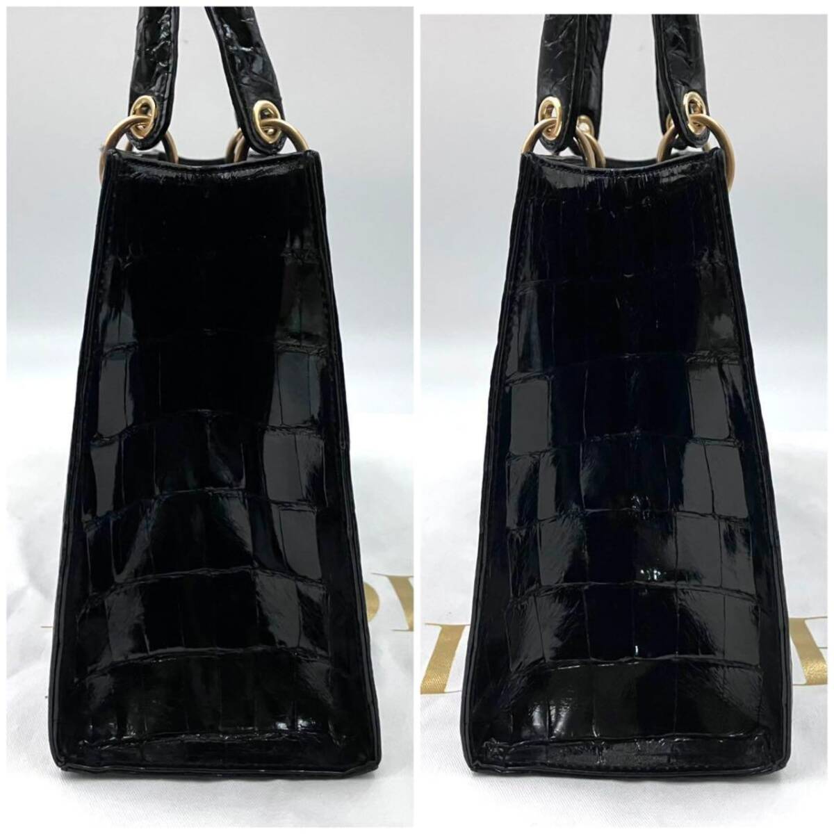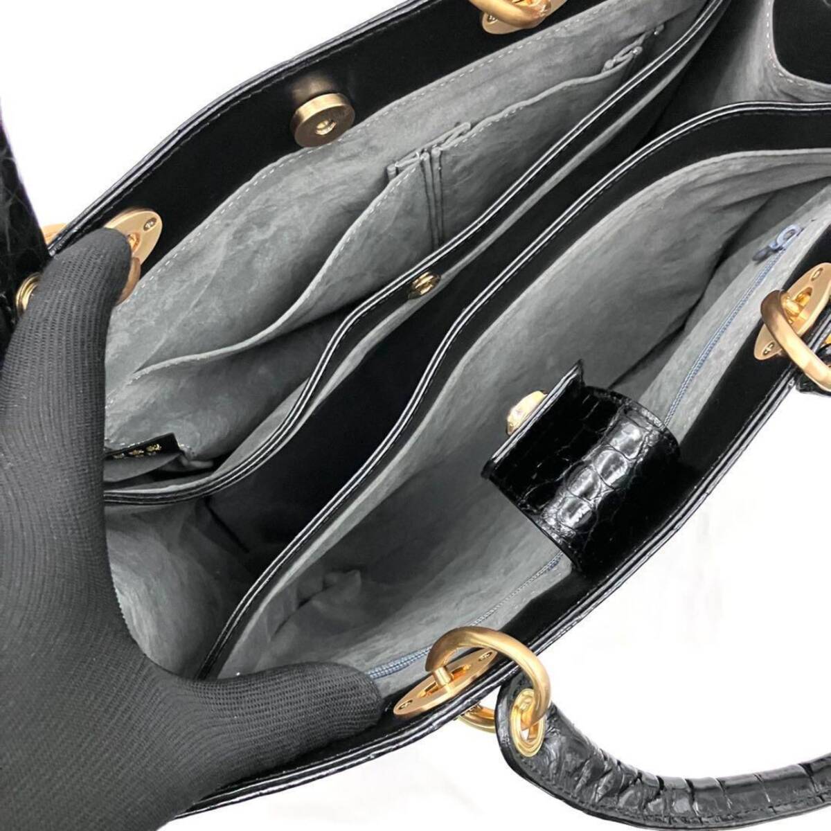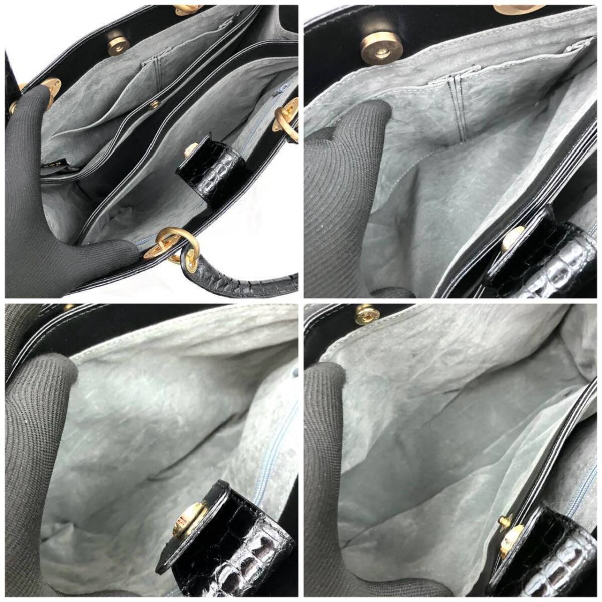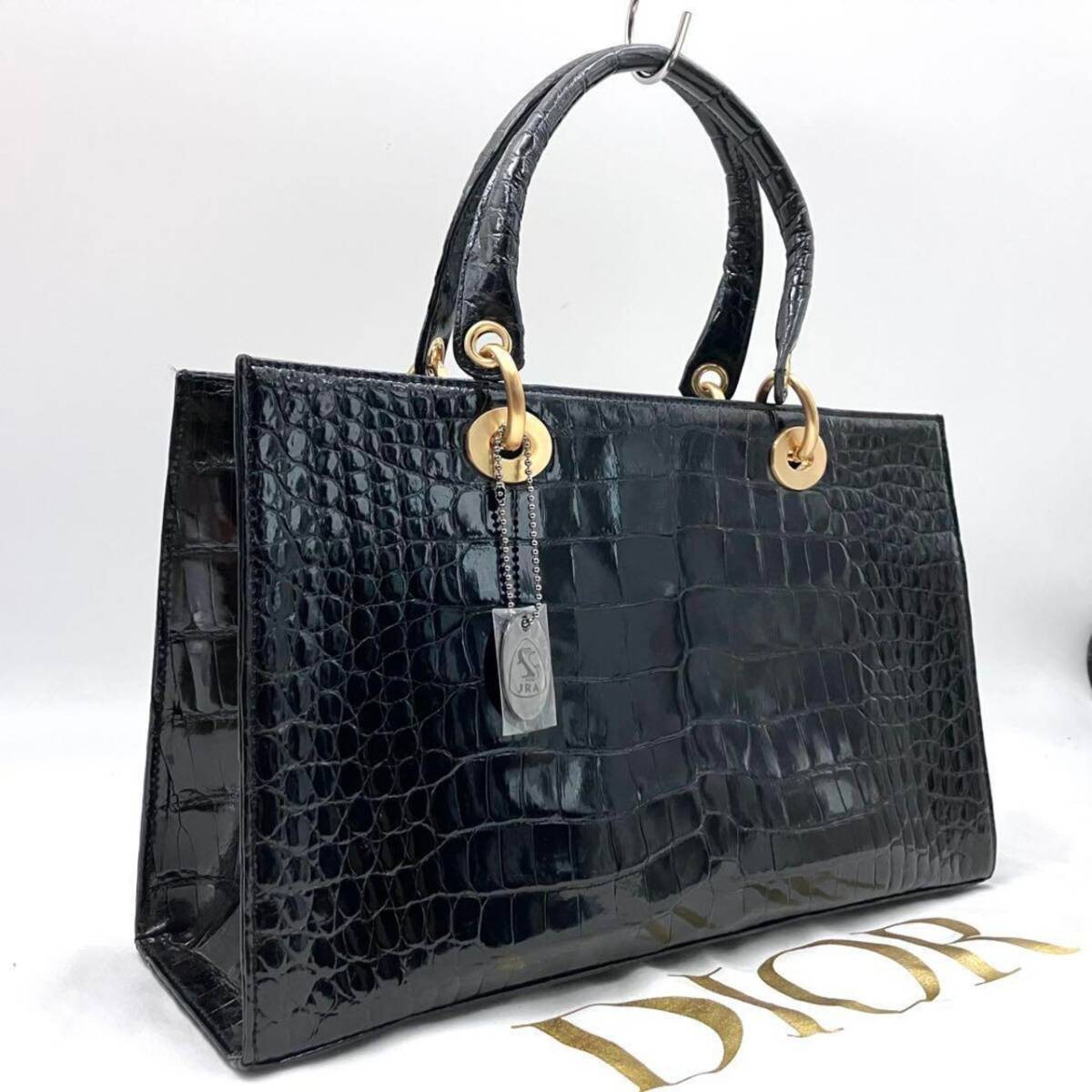 ゴールド金具 肩掛け クロコダイル 鰐革 自立 底鋲 ブラック リアル