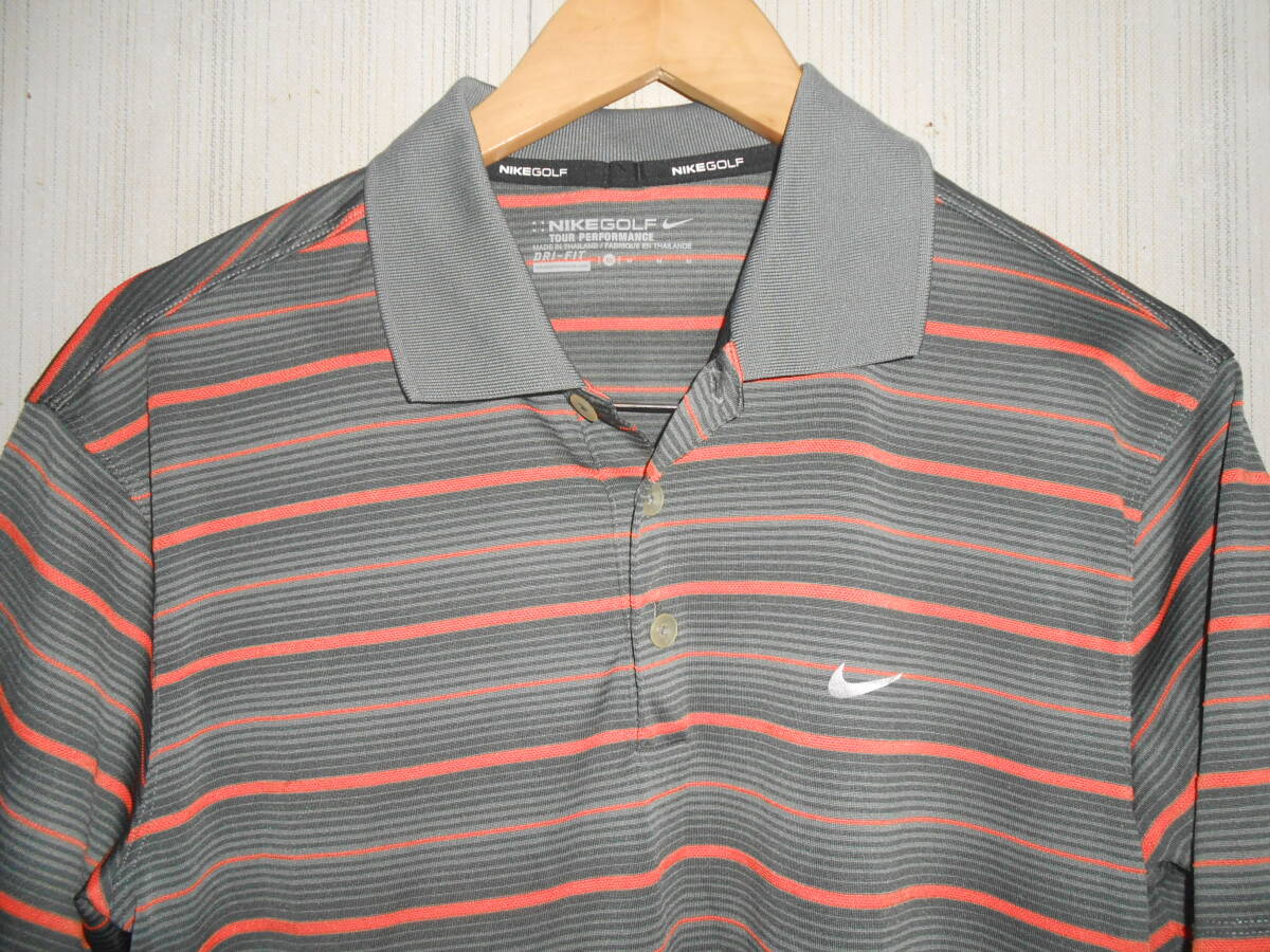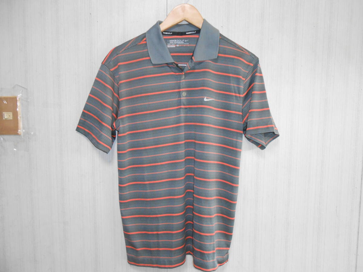 美品NIKE GOLFナイキゴルフボーダー柄半袖ポロシャツ M