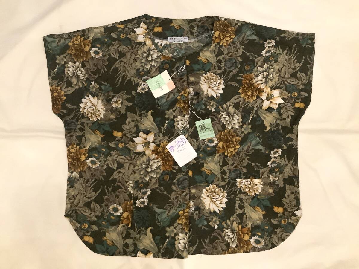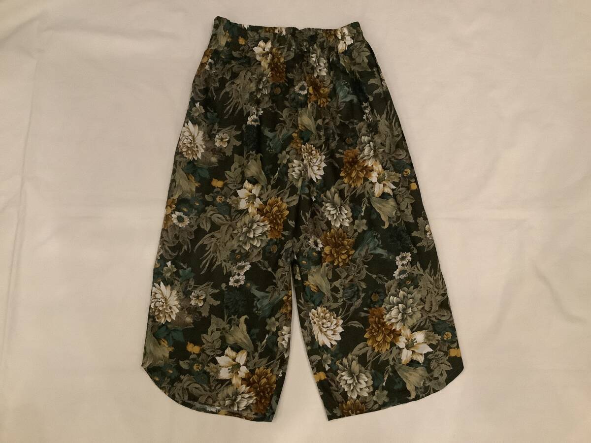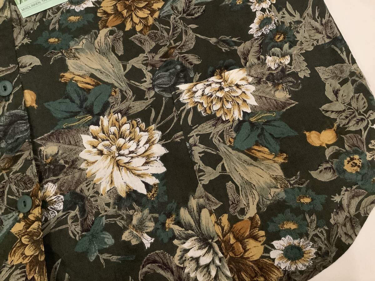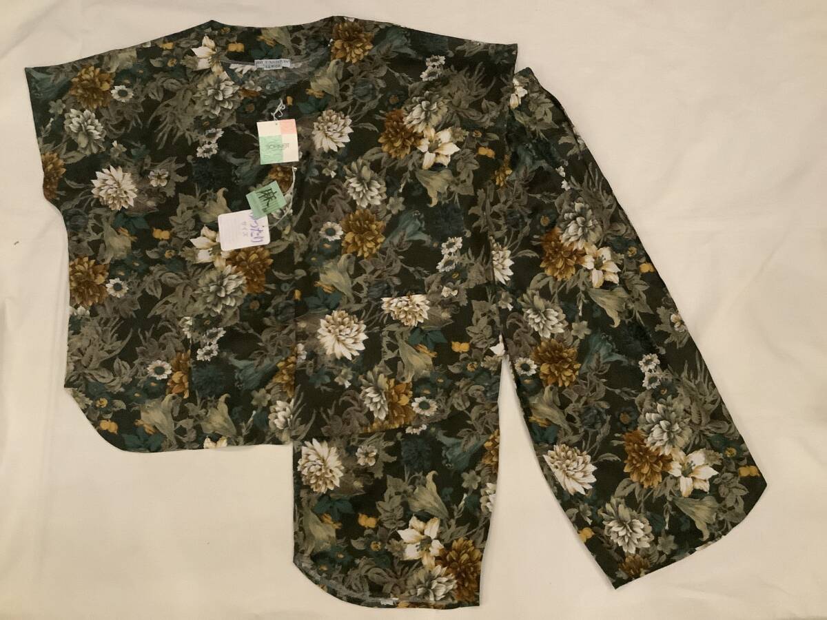 即決 新品 未使用 保管品 カジュアルウェア セットアップ 綿85% 麻15% 上下 パジャマ 家着 深緑 ホームウェア ボタニカル 花柄 日本製