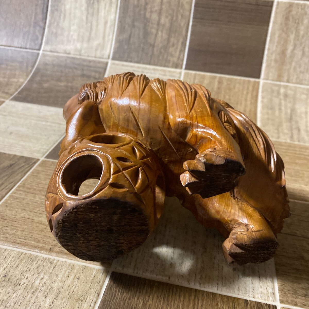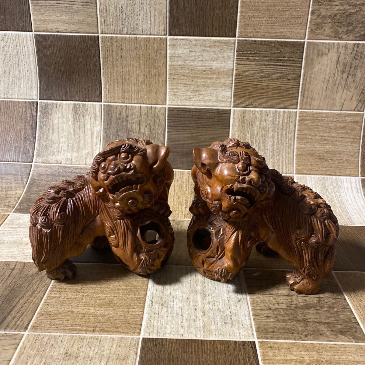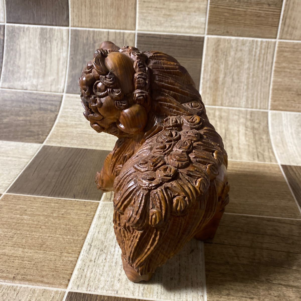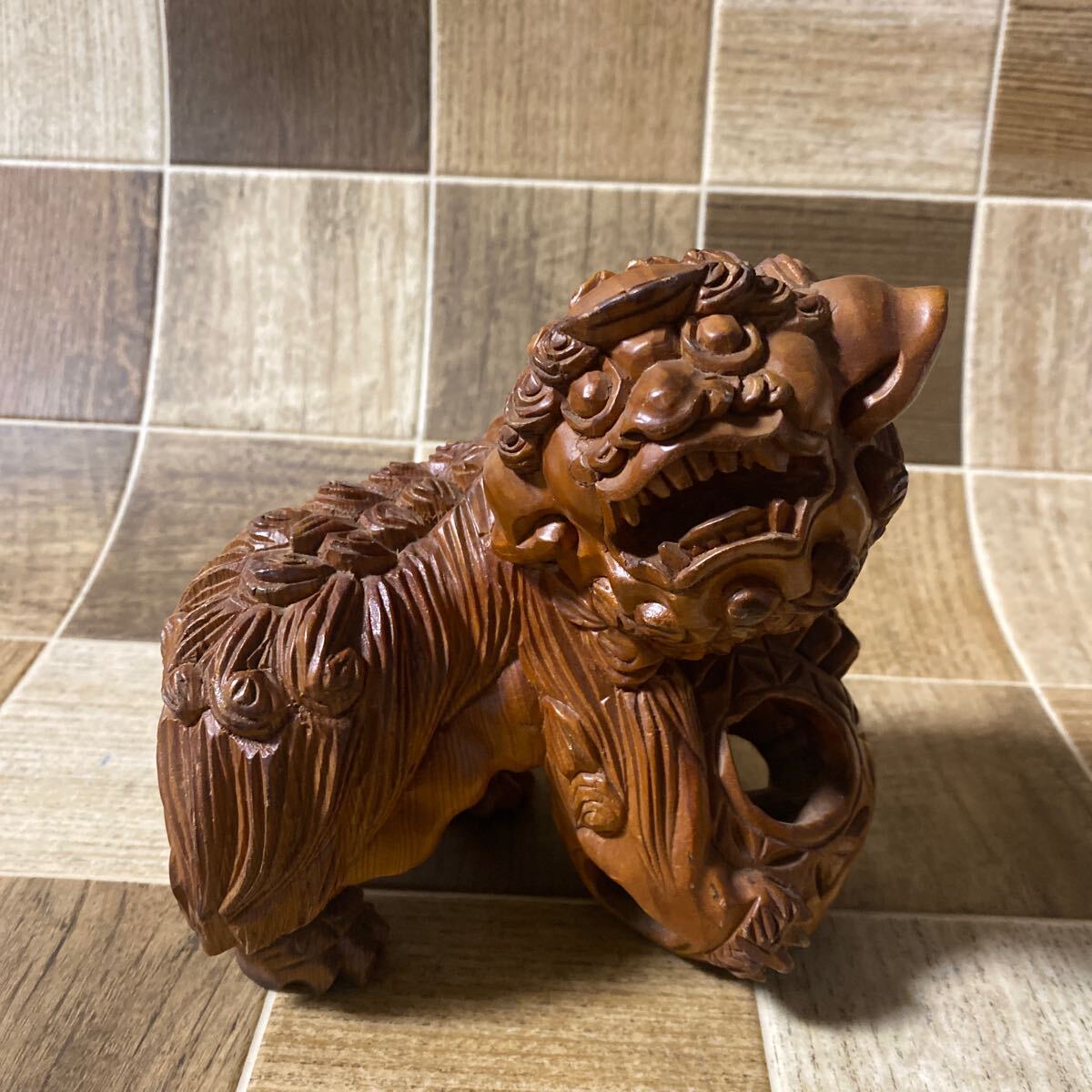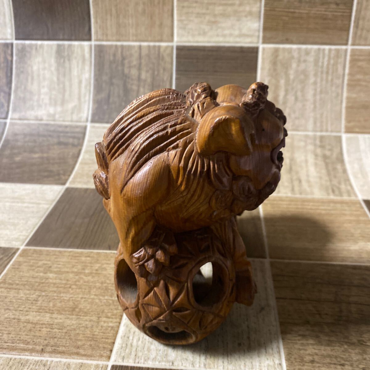 こちらは 玉乗り獅子 木彫り 木工品 伝統工芸品 彫刻 シーサー 狛犬 玉入り 置物 オブジェ インテリア アンティーク レトロ 中古品 です。