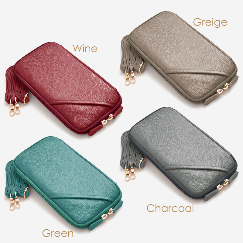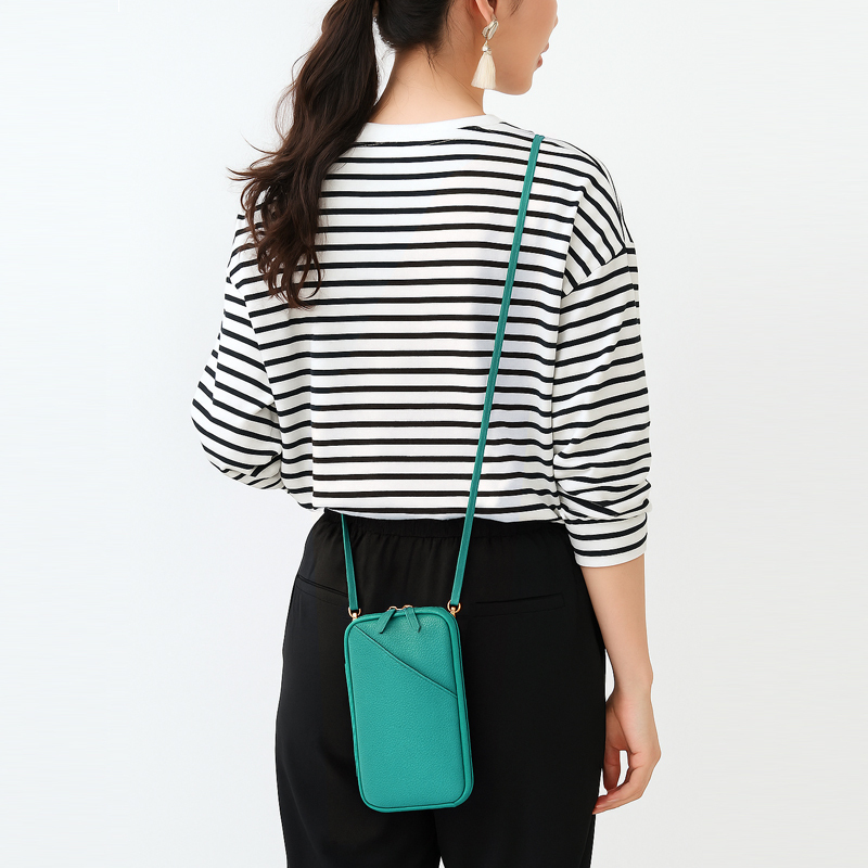 牛革エンボス加工の縦横2Wayショルダーポーチ。