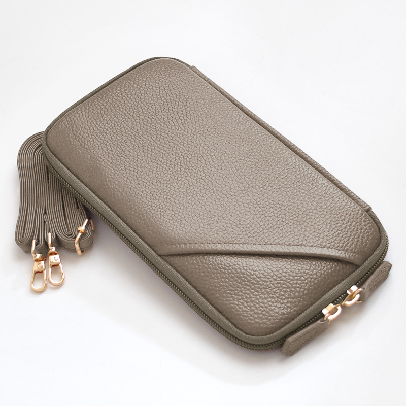 【物価高騰支援タイムセール】【送料込み】【期間限定】【新品】【税込み】牛革エンボス☆縦横2WAY☆サコッシュスマホショルダーバッグ灰肌