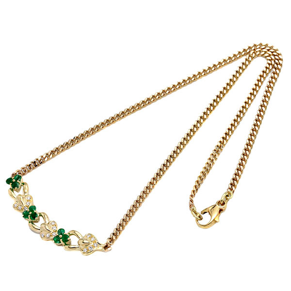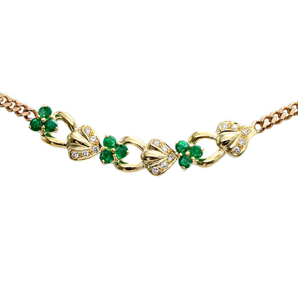 エメラルドとダイヤモンドをあしらった華やかな喜平ネックレスです。