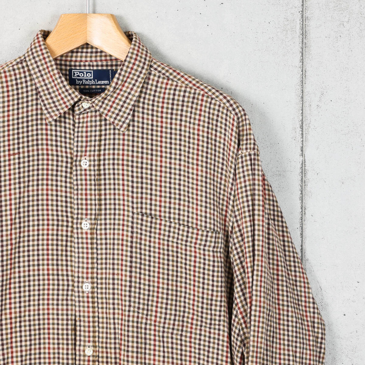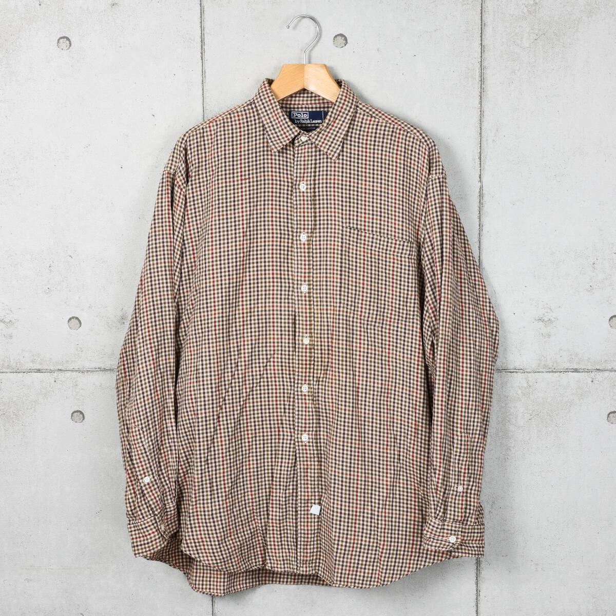 【ブランド】 Polo Ralph Lauren / ポロラルフローレン 【アイテム】 ツイル素材 チェック レギュラーカラーシャツ 【商品説明】 アメリカで購入しました、ラルフローレンのツイル素材が使用されたチェック柄のレギュラーカラーシャツになります。 【カラー】 ベージュ×ブラウン×オリーブ 【コンディション】 使用に伴う色落ちや擦れなどがあります。 【サイズ】 サイズ:XL 身幅:74cm 肩幅:56cm 着丈:84cm 袖丈:62cm | |||