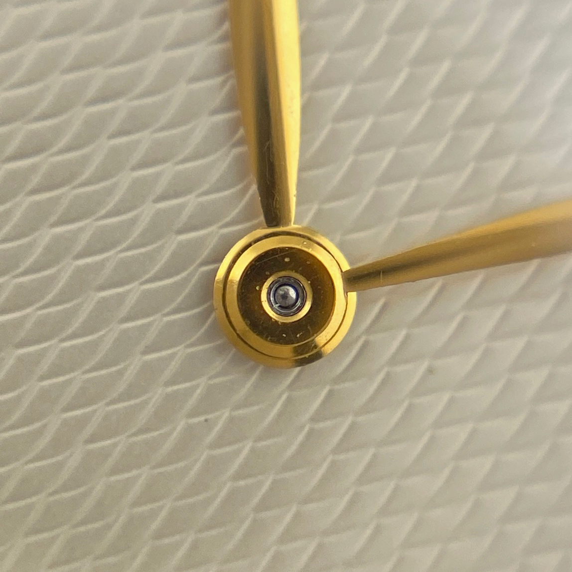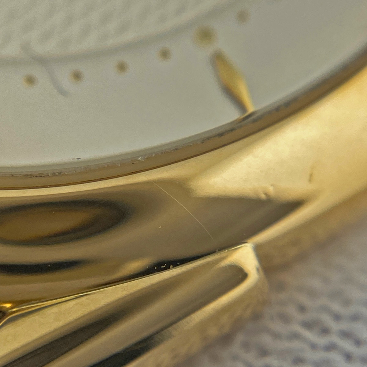 風防に欠けやコーティング剥がれ、文字盤に塵の付着、針に劣化、全体的に肉眼で確認できるキズや打痕がございます。 指定業者にてオーバーホール、社外ベルト交換、仕上げ済み(2025年7月) |