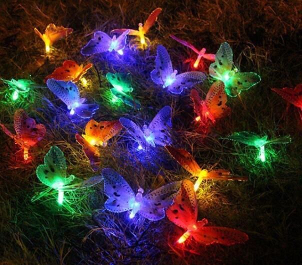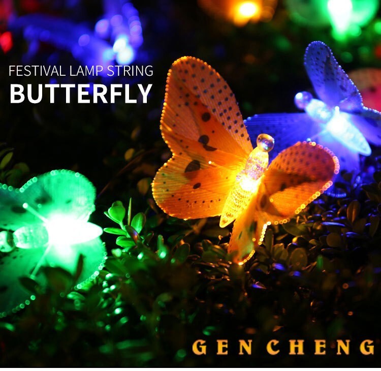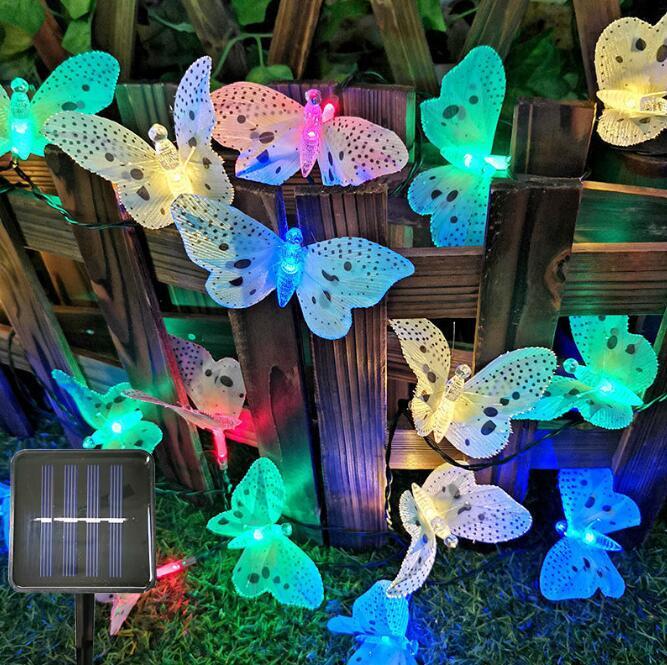 新作20Led ソーラー パワー バタフライ 光ファイバー フェアリー ストリングライト 防水 屋外 ガーデン ホリデー デコレーション