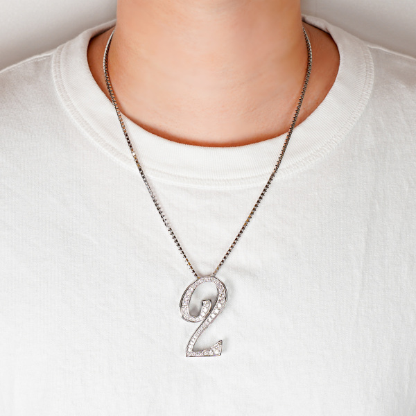 | 商品説明 | 数字の「2」をモチーフにした大きめペンヘッドです。普通の大きさでは物足りない、胸元に大きなアクセントが欲しい方にピッタリです。質の良い3カラット分のダイヤモンドを贅沢に使用しております。 |