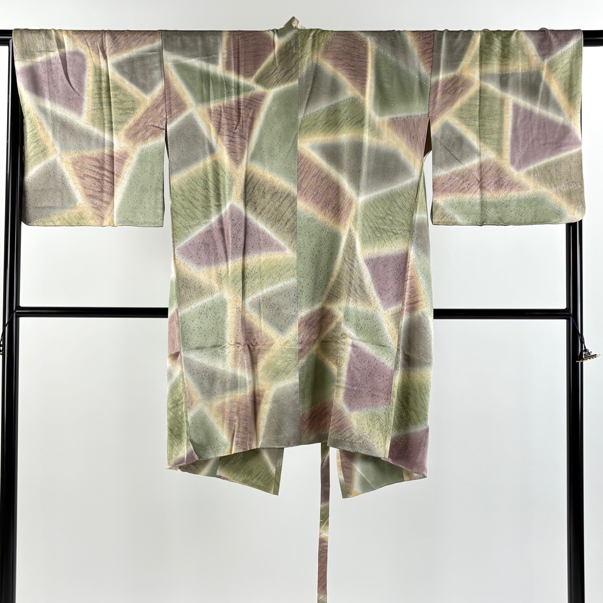 | 道中着 逸品 和装コート 幾何学 ぼかし 紫 身丈98 裄丈68 L 正絹 【中古】 |