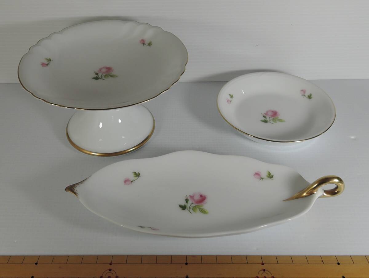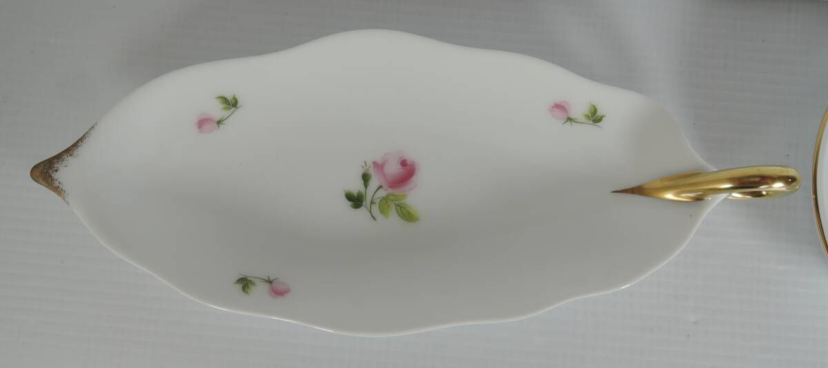 ☆06Q■大倉陶園 ピンクローズ 金彩 デザートプレート・レモントレイ・小プレート 3点■美品 レモントレー/木の葉型トレー