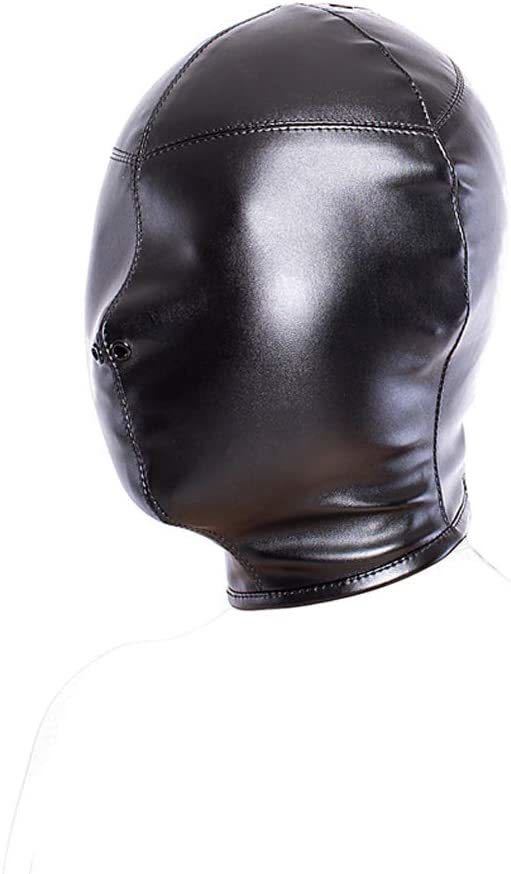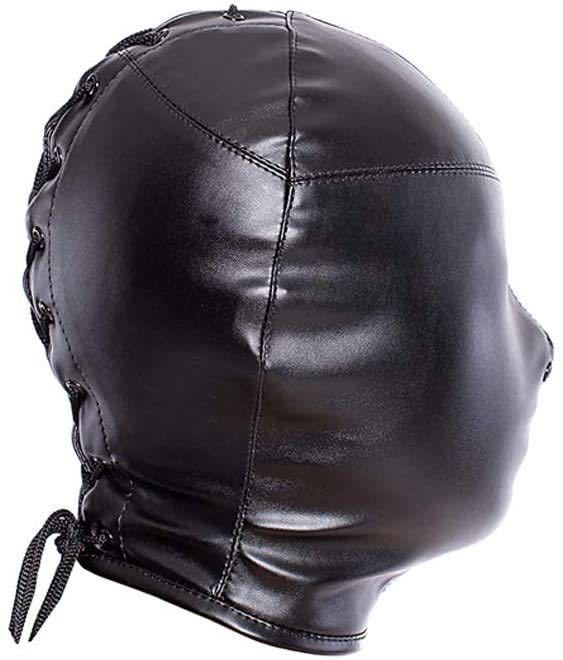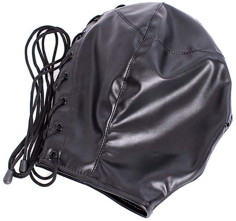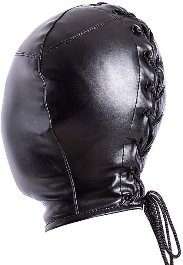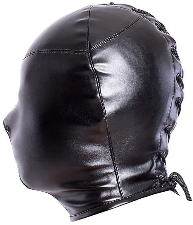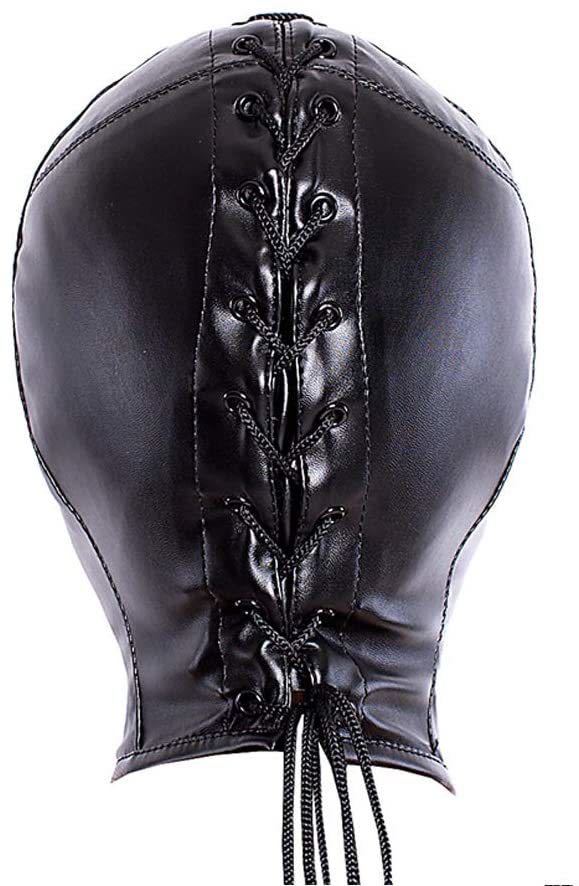 視界ゼロ! 全頭マスク レザーマスク ブラック Lサイズ 編み上げタイプ ボンデージ SM 拘束 コスプレ マスク