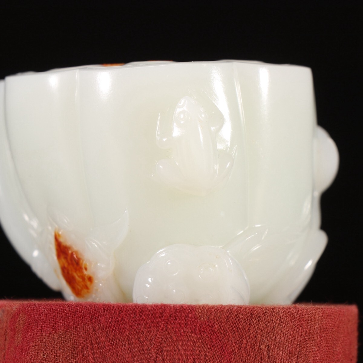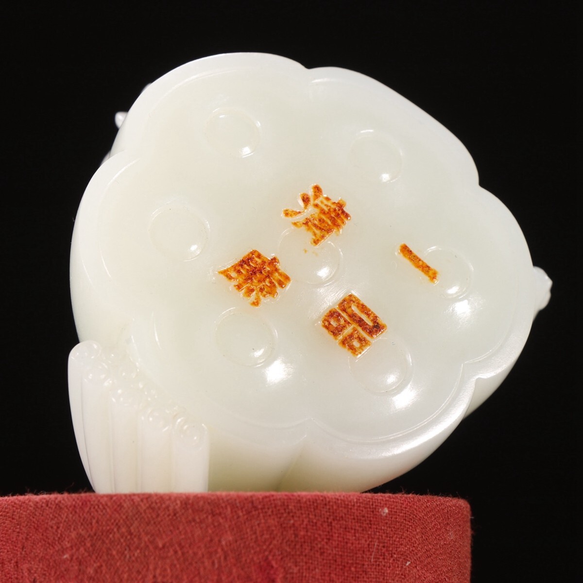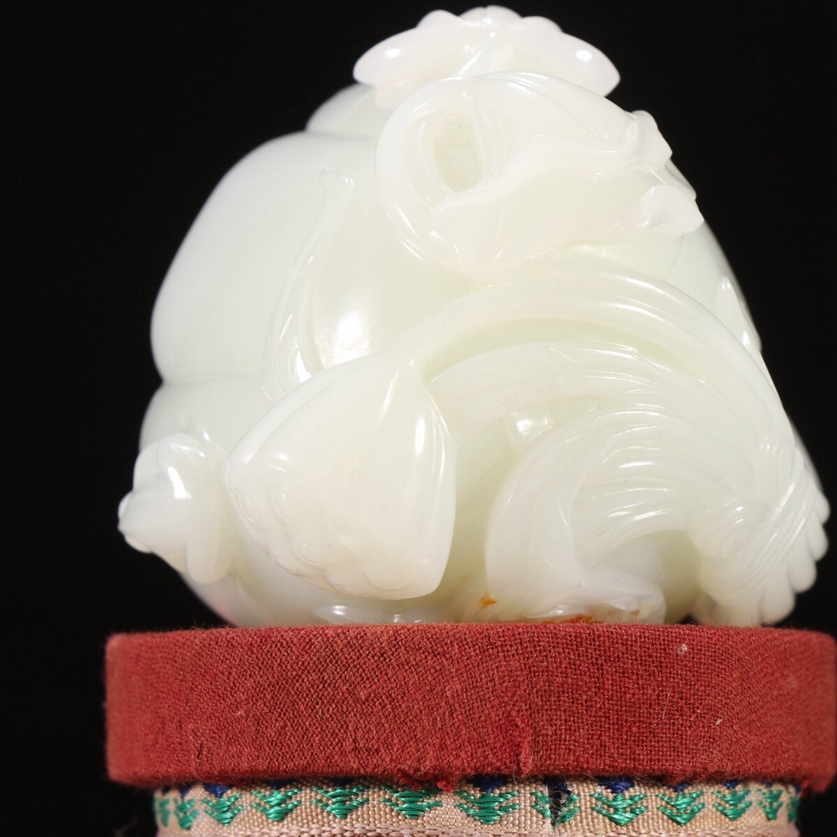 【瓏】和田玉 子料彫 一品清廉 蓮蓬擺件 清時代 極細工 手彫り 置物擺件 中国古賞物 古美術 蔵出