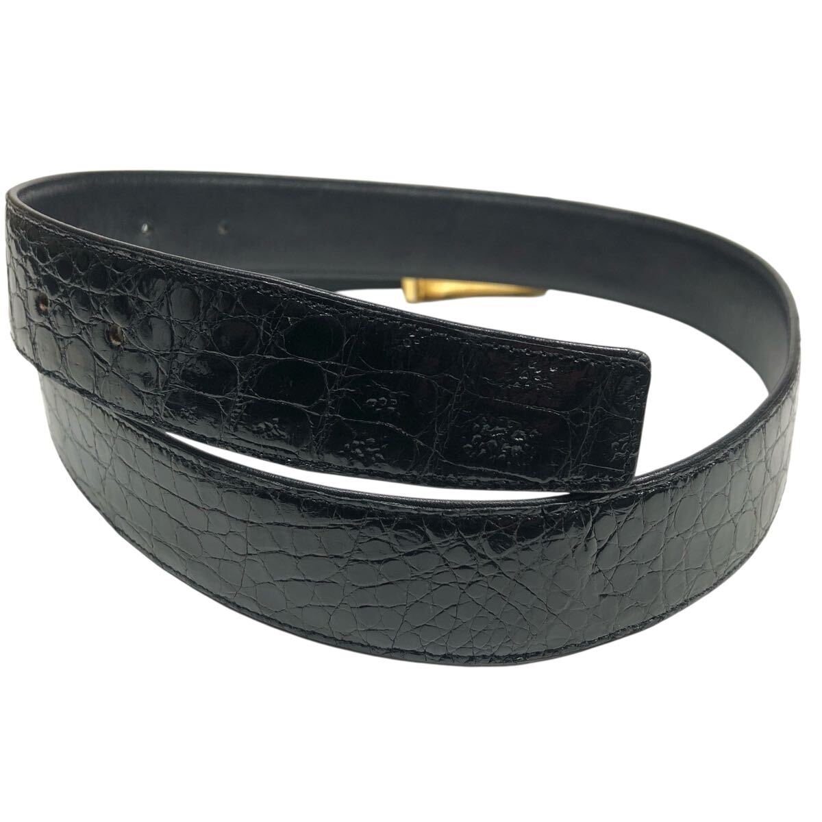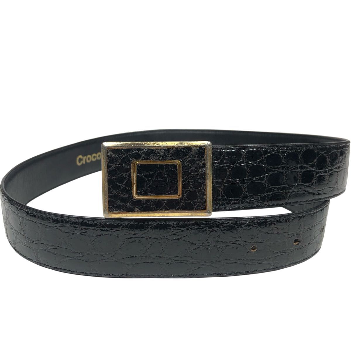 【高級素材】本物 クロコダイル 黒 ベルト 全長100cm 幅3.3cm ワニ革 エキゾチックレザー 男性用 メンズ サイズ調整可能